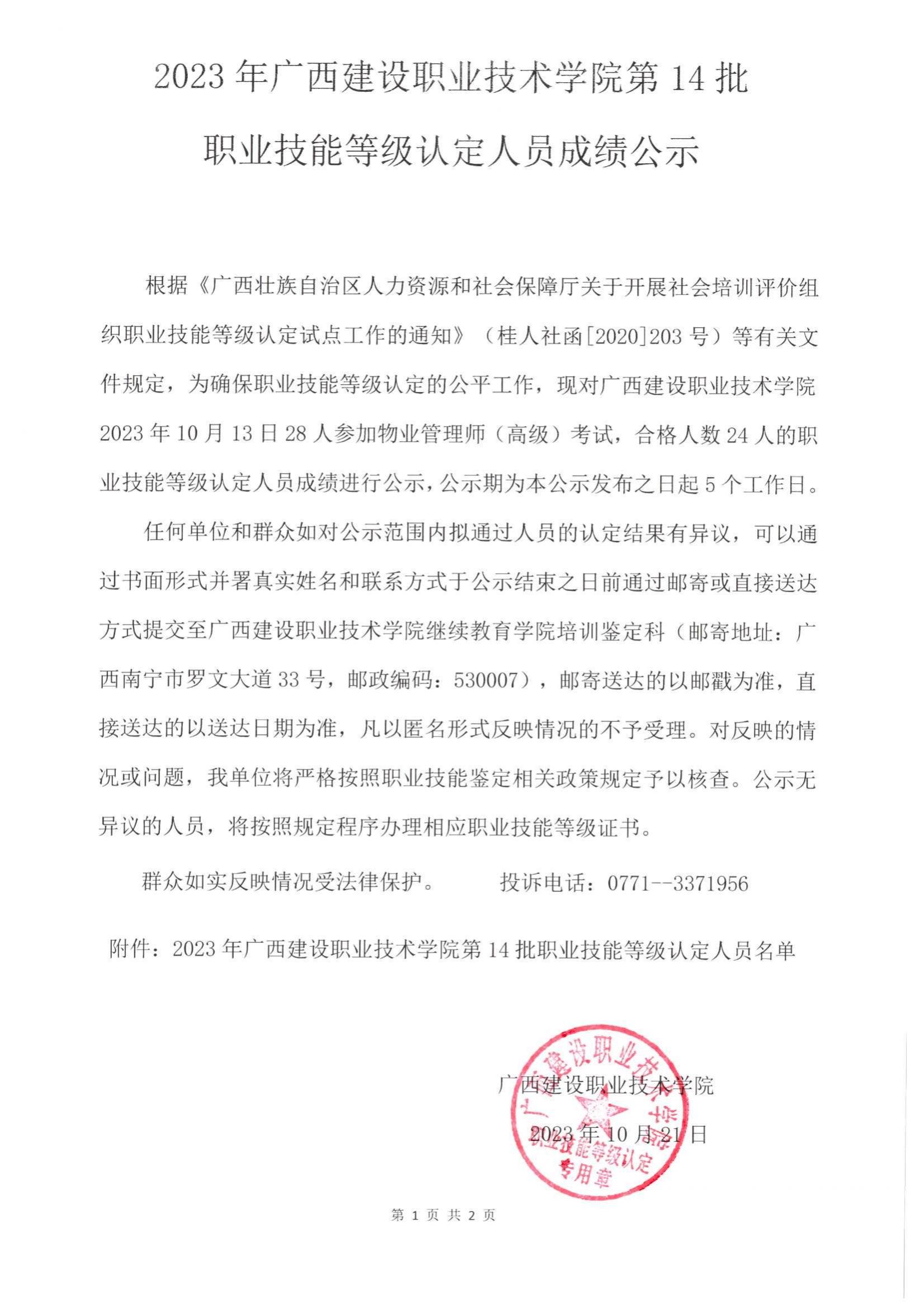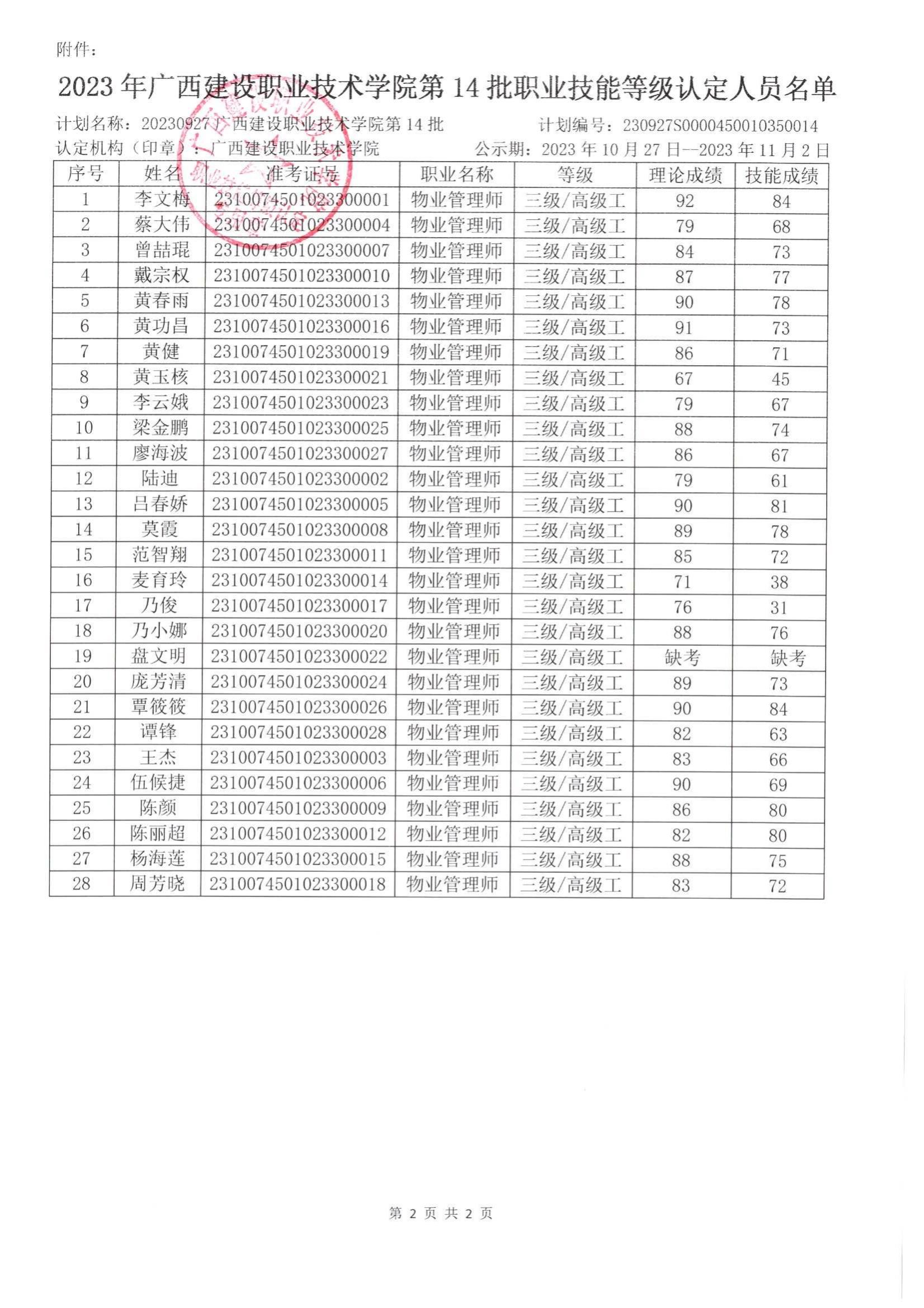 培训信息 当前位置: 首页 >> 培训信息 >> 正文 2023年完美网页版第14批职业技能等级认定人员成绩公示 发布日期:2023-10-27 点击: 附件【2023年完美网页版第14批职业技能等级认定人员成绩公示.pdf】已下载次