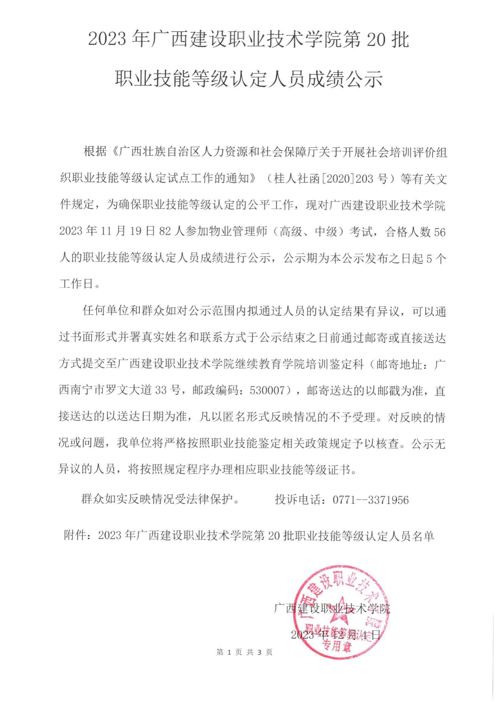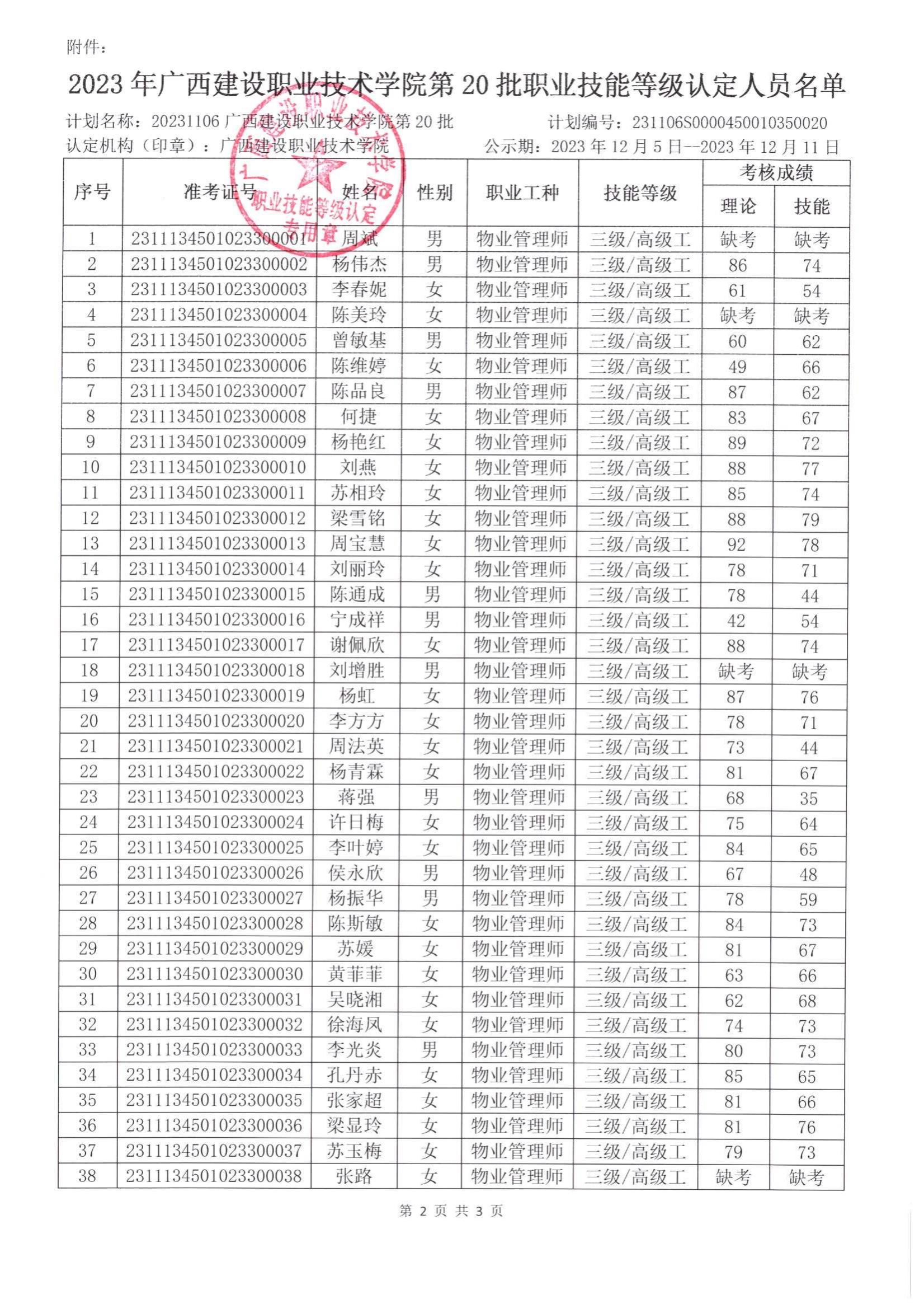 培训信息 当前位置: 首页 >> 培训信息 >> 正文 2023年完美网页版第20批职业技能等级认定人员成绩公示 发布日期:2023-12-05 点击: 附件【2023年完美网页版第20批职业技能等级认定人员成绩公示.pdf】已下载次