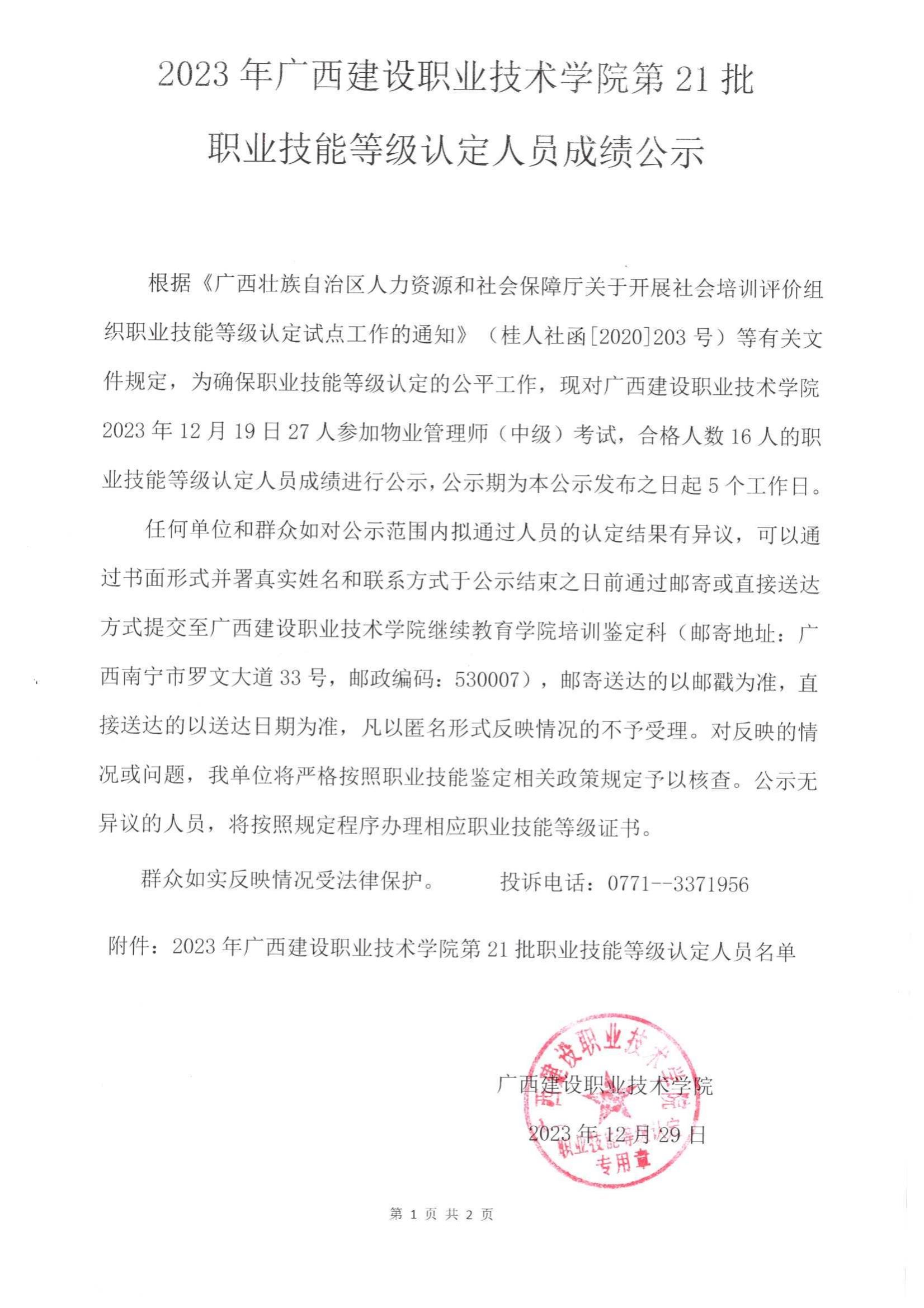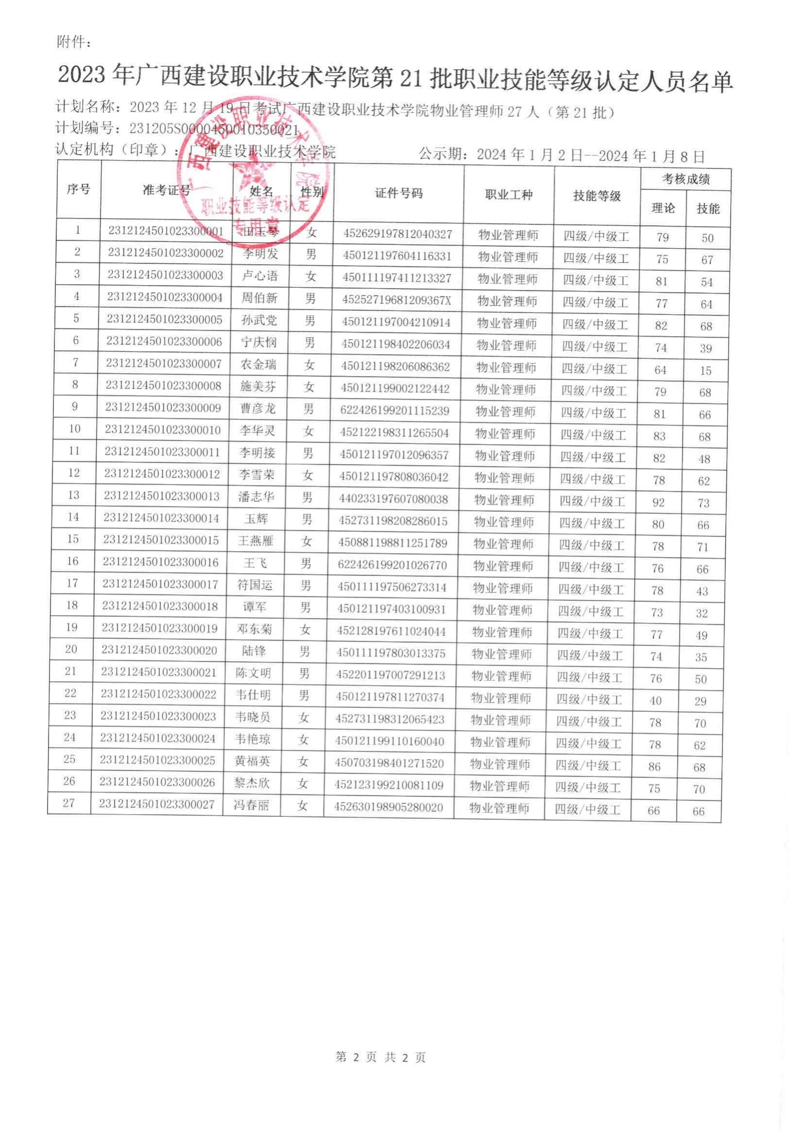 培训信息 当前位置: 首页 >> 培训信息 >> 正文 2023年完美网页版第21批职业技能等级认定人员成绩公示 发布日期:2024-01-02 点击: 附件【2023年完美网页版第21批职业技能等级认定人员成绩公示.pdf】已下载次
