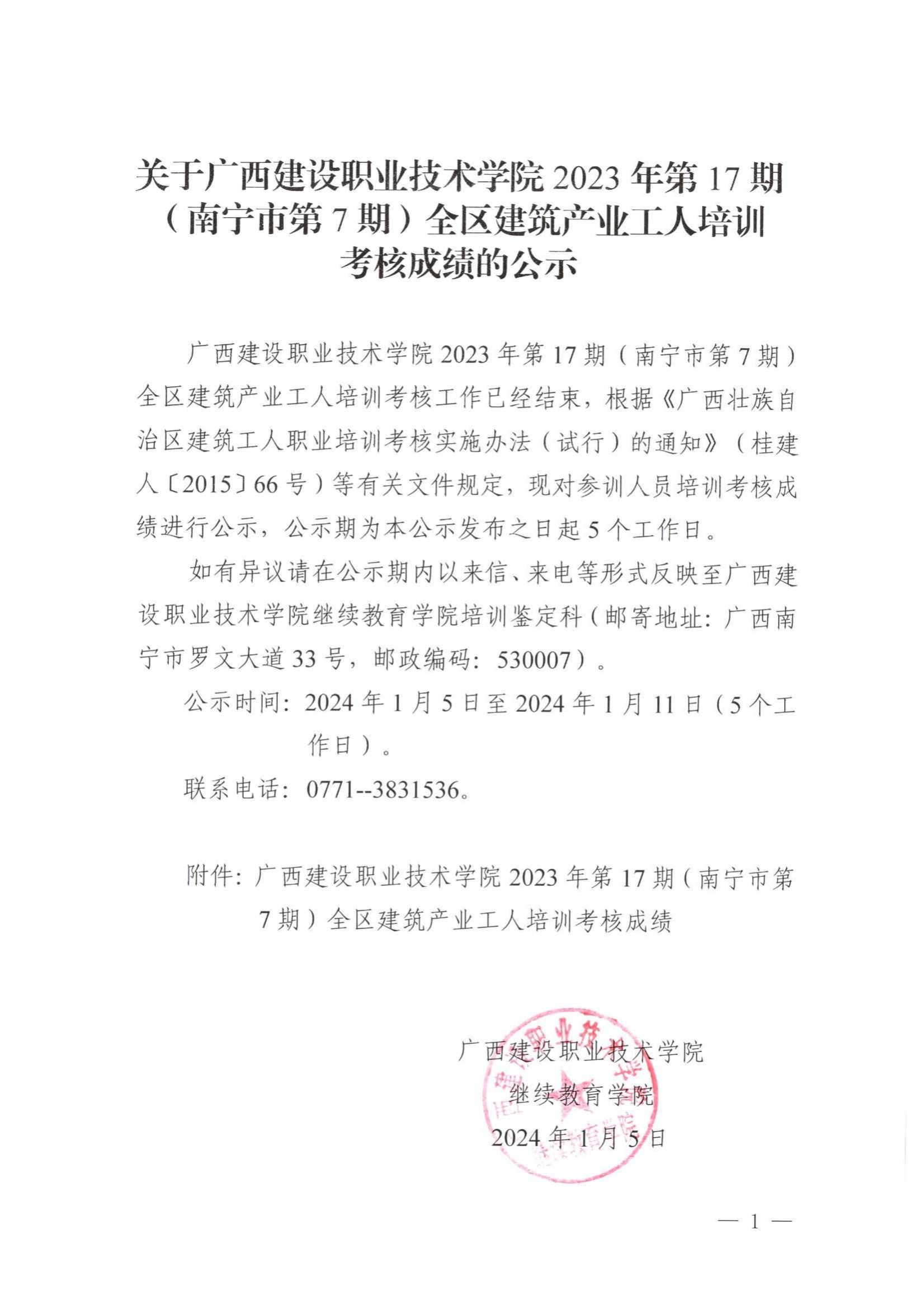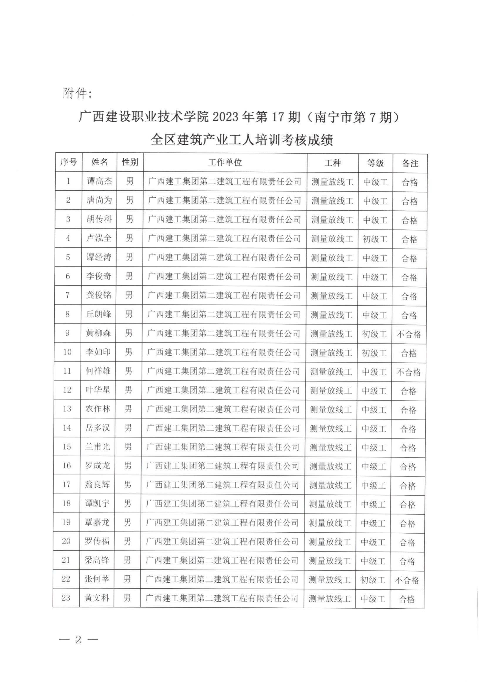培训信息 当前位置: 首页 >> 培训信息 >> 正文 关于完美网页版2023年全区建筑产业工人第17期(南宁市第7期)培训考核成绩的公示 发布日期:2024-01-05 点击: 附件【关于完美网页版2023年全区建筑产业工人第17期(南宁市第7期)培训考核成绩的公示 .pdf】已下载次