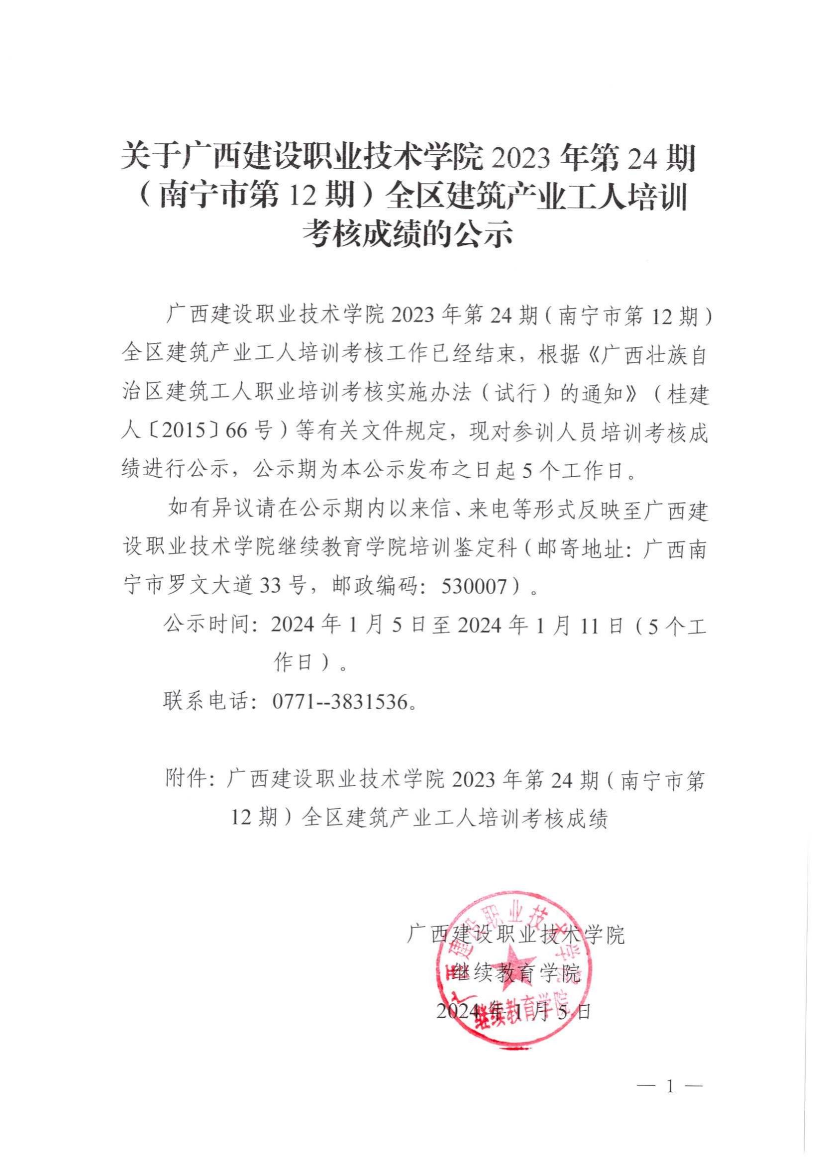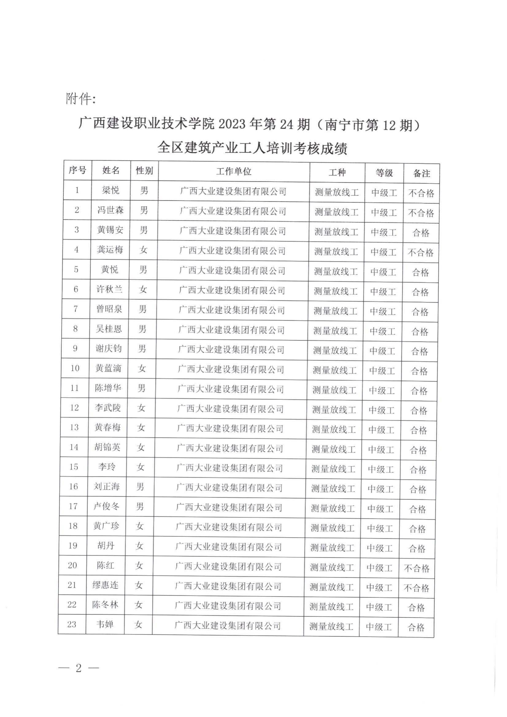 培训信息 当前位置: 首页 >> 培训信息 >> 正文 关于完美网页版2023年全区建筑产业工人第24期(南宁市第12期)培训考核成绩的公示 发布日期:2024-01-05 点击: 附件【关于完美网页版2023年全区建筑产业工人第24期(南宁市第12期)培训考核成绩的公示 .pdf】已下载次