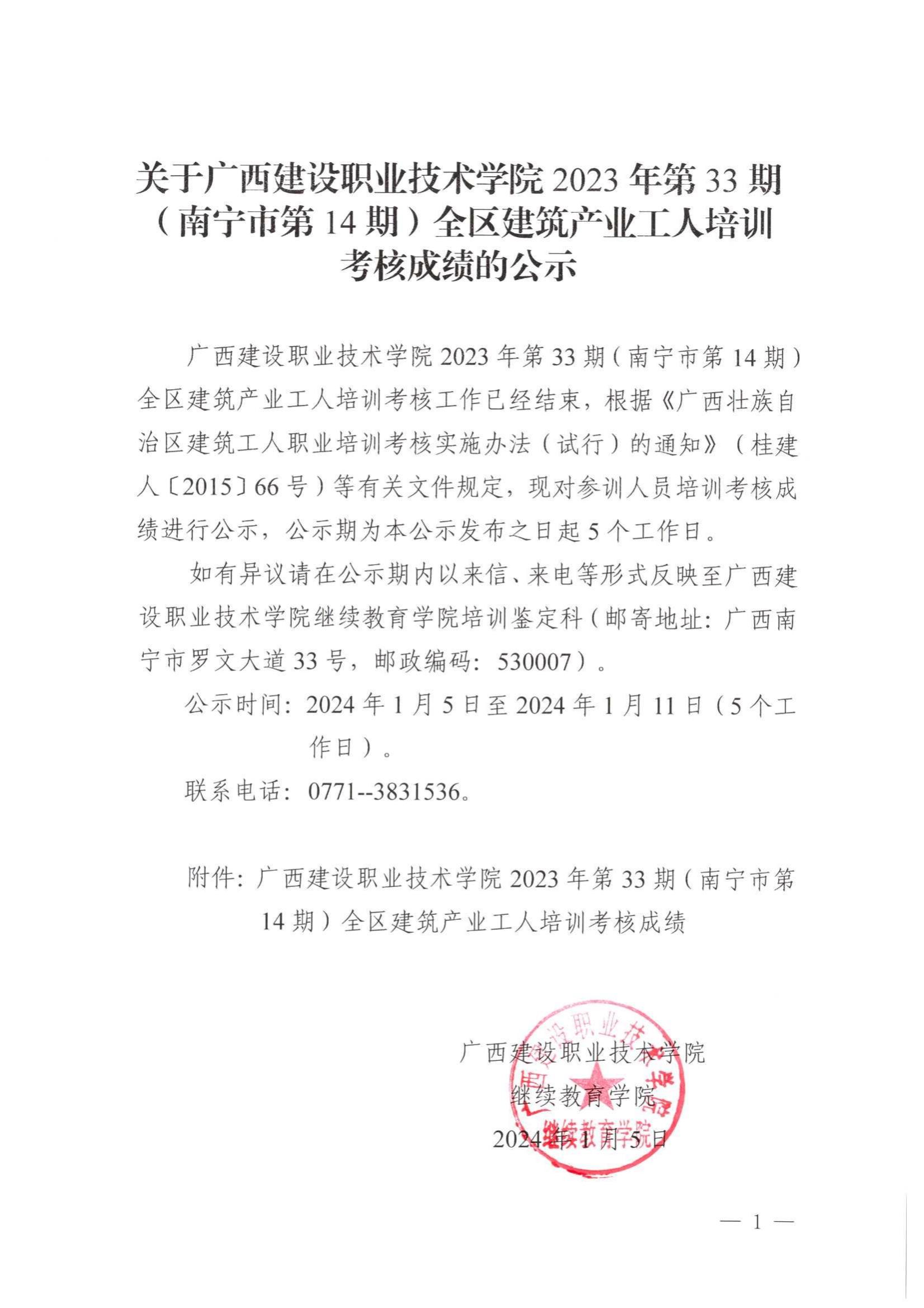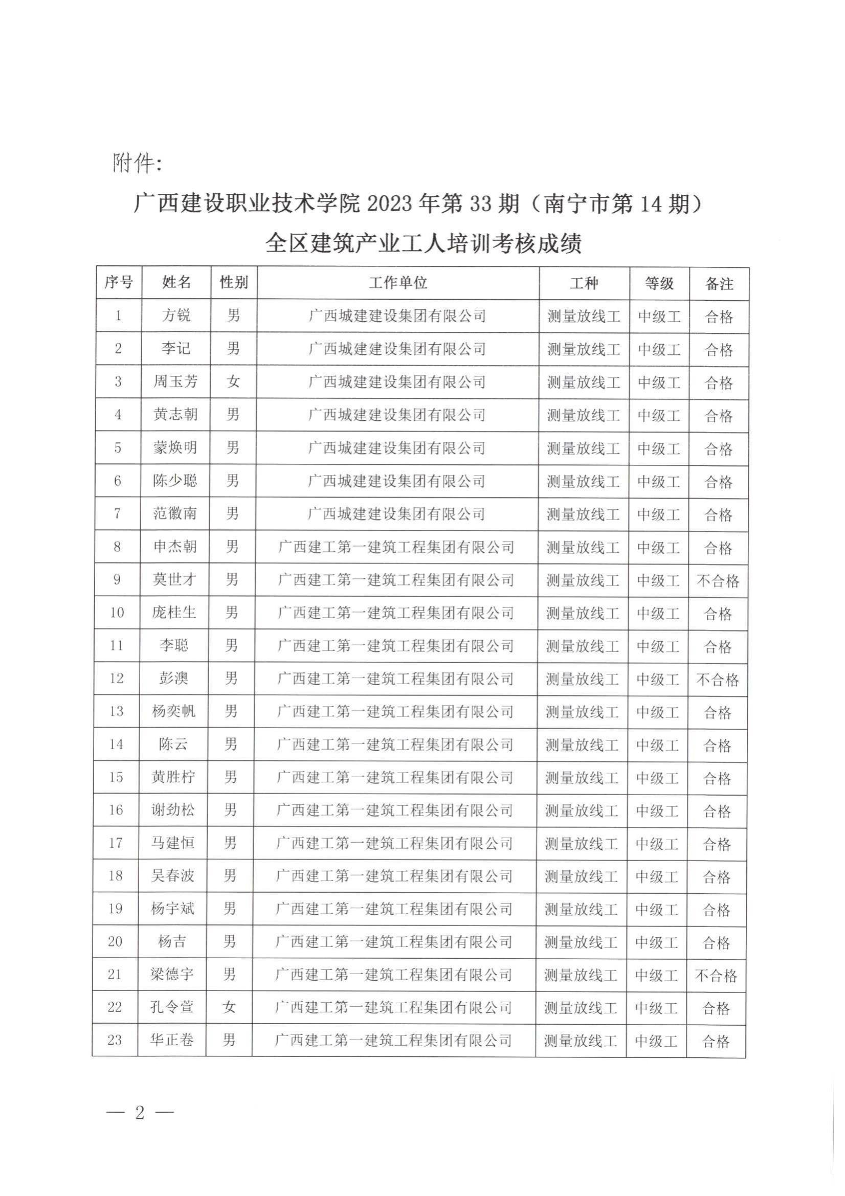 培训信息 当前位置: 首页 >> 培训信息 >> 正文 关于完美网页版2023年全区建筑产业工人第33期(南宁市第14期)培训考核成绩的公示 发布日期:2024-01-05 点击: 附件【关于完美网页版2023年全区建筑产业工人第33期(南宁市第14期)培训考核成绩的公示 .pdf】已下载次