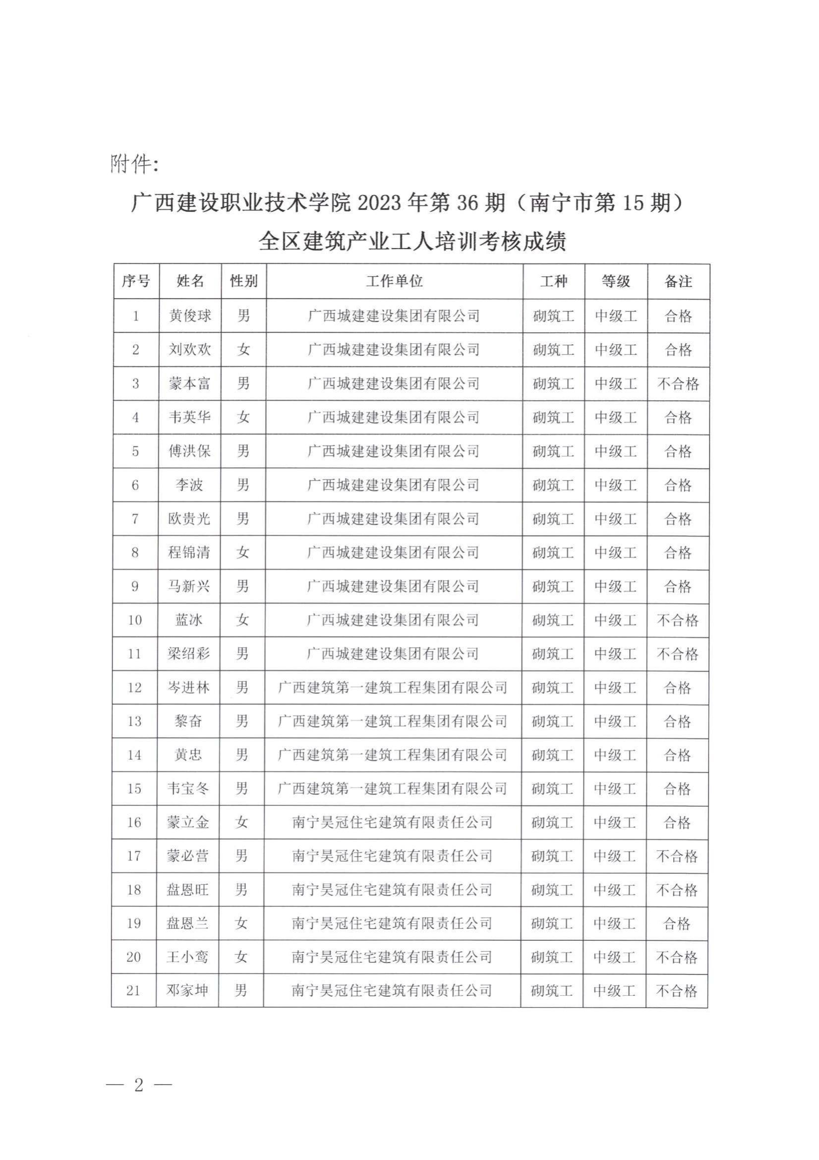 培训信息 当前位置: 首页 >> 培训信息 >> 正文 关于完美网页版2023年全区建筑产业工人第36期(南宁市第15期)培训考核成绩的公示 发布日期:2024-01-05 点击: 附件【关于完美网页版2023年全区建筑产业工人第36期(南宁市第15期)培训考核成绩的公示 .pdf】已下载次