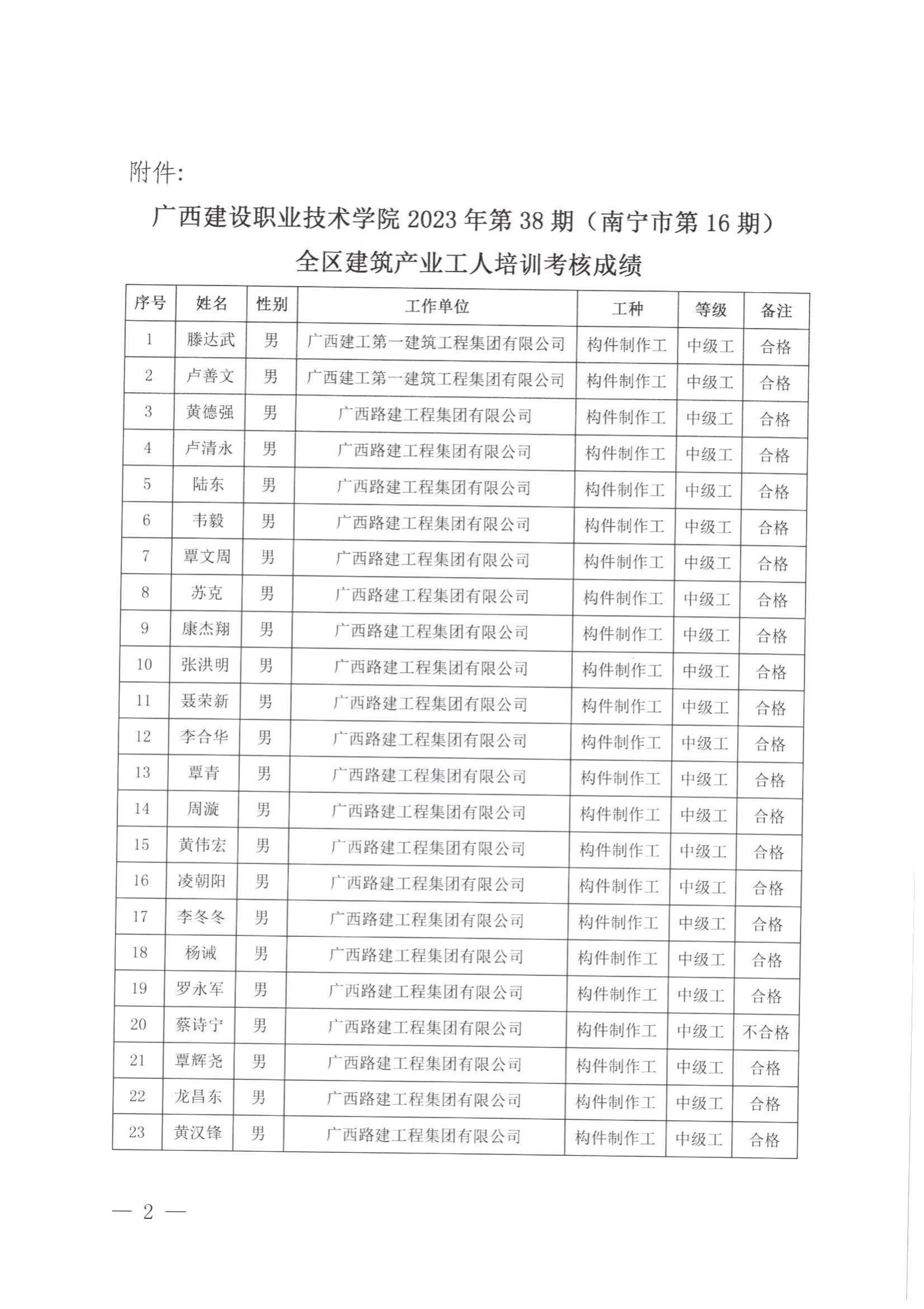 培训信息 当前位置: 首页 >> 培训信息 >> 正文 关于完美网页版2023年全区建筑产业工人第38期(南宁市第16期)培训考核成绩的公示 发布日期:2024-01-05 点击: 附件【关于完美网页版2023年全区建筑产业工人第38期(南宁市第16期)培训考核成绩的公示 .pdf】已下载次