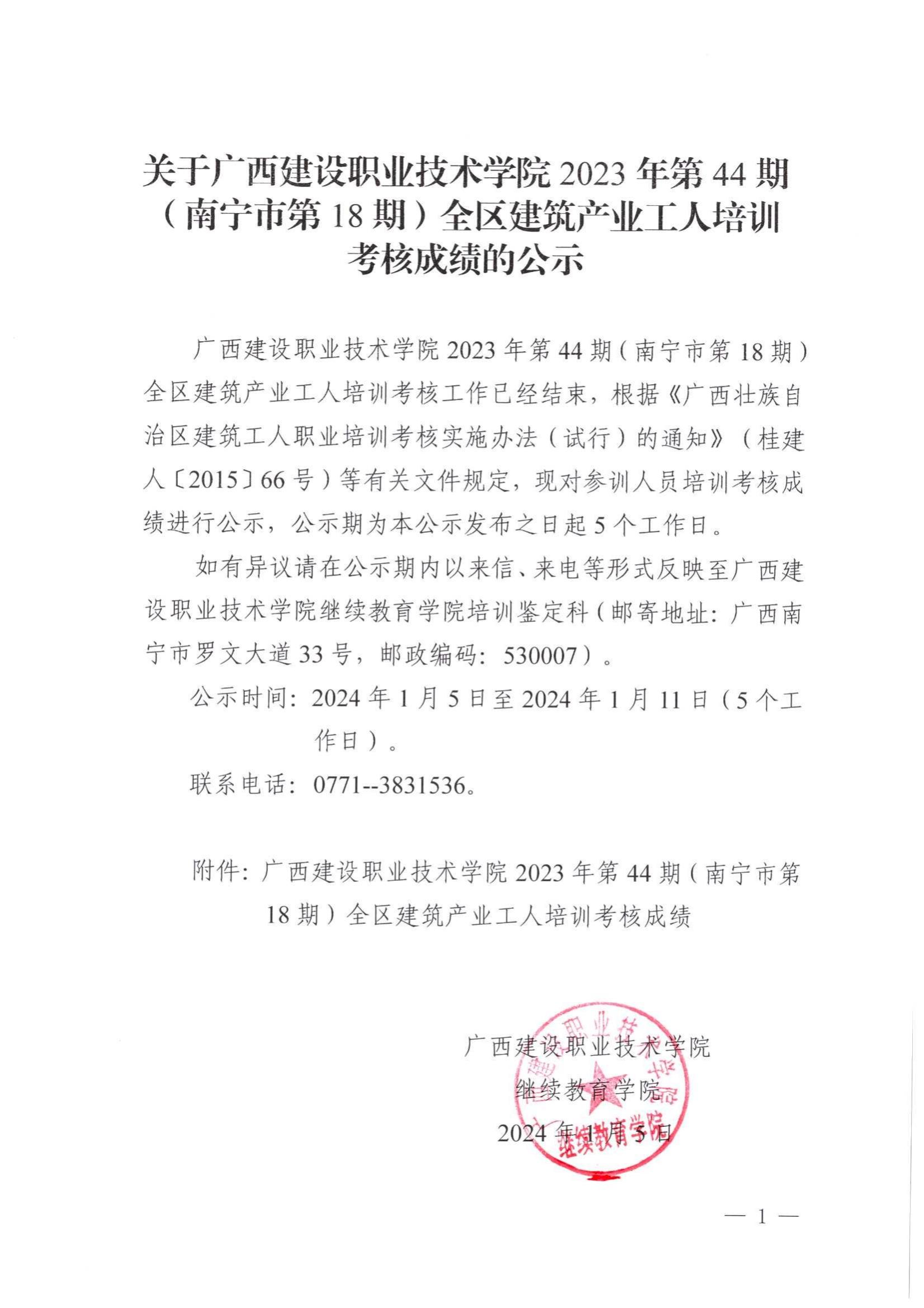 培训信息 当前位置: 首页 >> 培训信息 >> 正文 关于完美网页版2023年全区建筑产业工人第44期(南宁市第18期)培训考核成绩的公示 发布日期:2024-01-05 点击: 附件【关于完美网页版2023年全区建筑产业工人第44期(南宁市第18期)培训考核成绩的公示 .pdf】已下载次