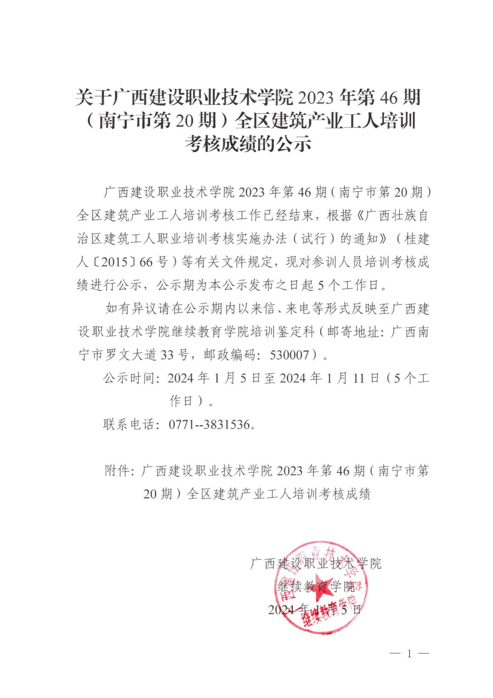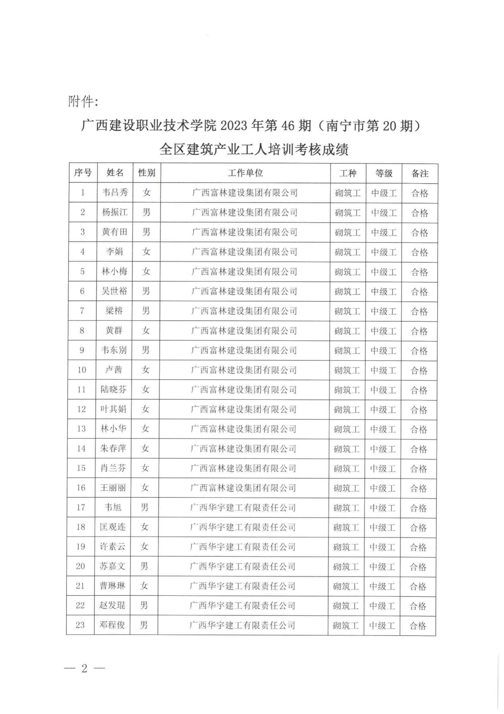 培训信息 当前位置: 首页 >> 培训信息 >> 正文 关于完美网页版2023年全区建筑产业工人第46期(南宁市第20期)培训考核成绩的公示 发布日期:2024-01-05 点击: 附件【关于完美网页版2023年全区建筑产业工人第46期(南宁市第20期)培训考核成绩的公示 .pdf】已下载次