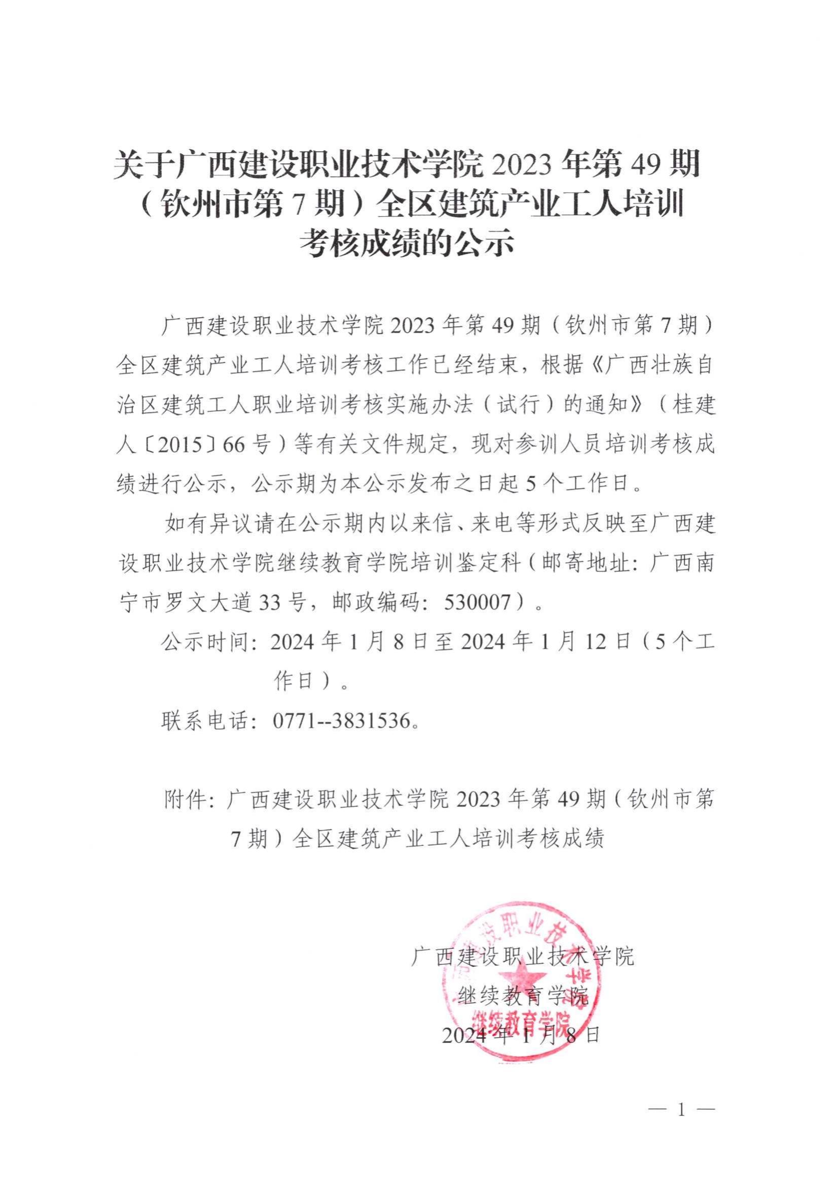 培训信息 当前位置: 首页 >> 培训信息 >> 正文 关于完美网页版2023年全区建筑产业工人第49期(钦州市第7期)培训考核成绩的公示 发布日期:2024-01-08 点击: 附件【关于完美网页版2023年全区建筑产业工人第49期(钦州市第7期)培训考核成绩的公示.pdf】已下载次