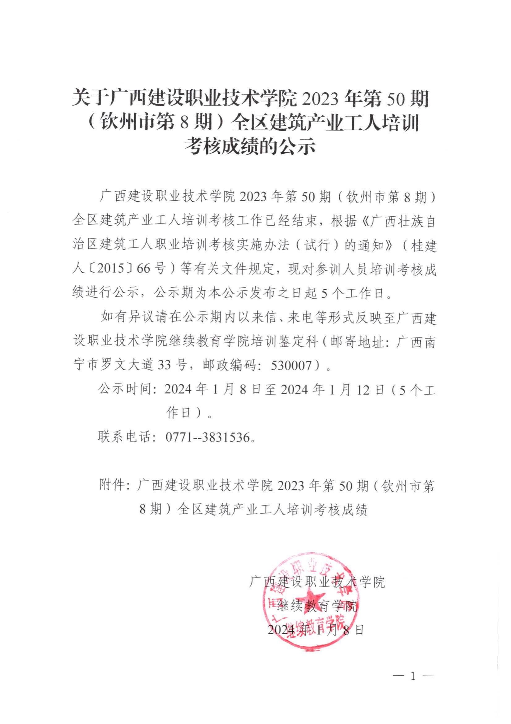 培训信息 当前位置: 首页 >> 培训信息 >> 正文 关于完美网页版2023年全区建筑产业工人第50期(钦州市第8期)培训考核成绩的公示 发布日期:2024-01-08 点击: 附件【关于完美网页版2023年全区建筑产业工人第50期(钦州市第8期)培训考核成绩的公示.pdf】已下载次