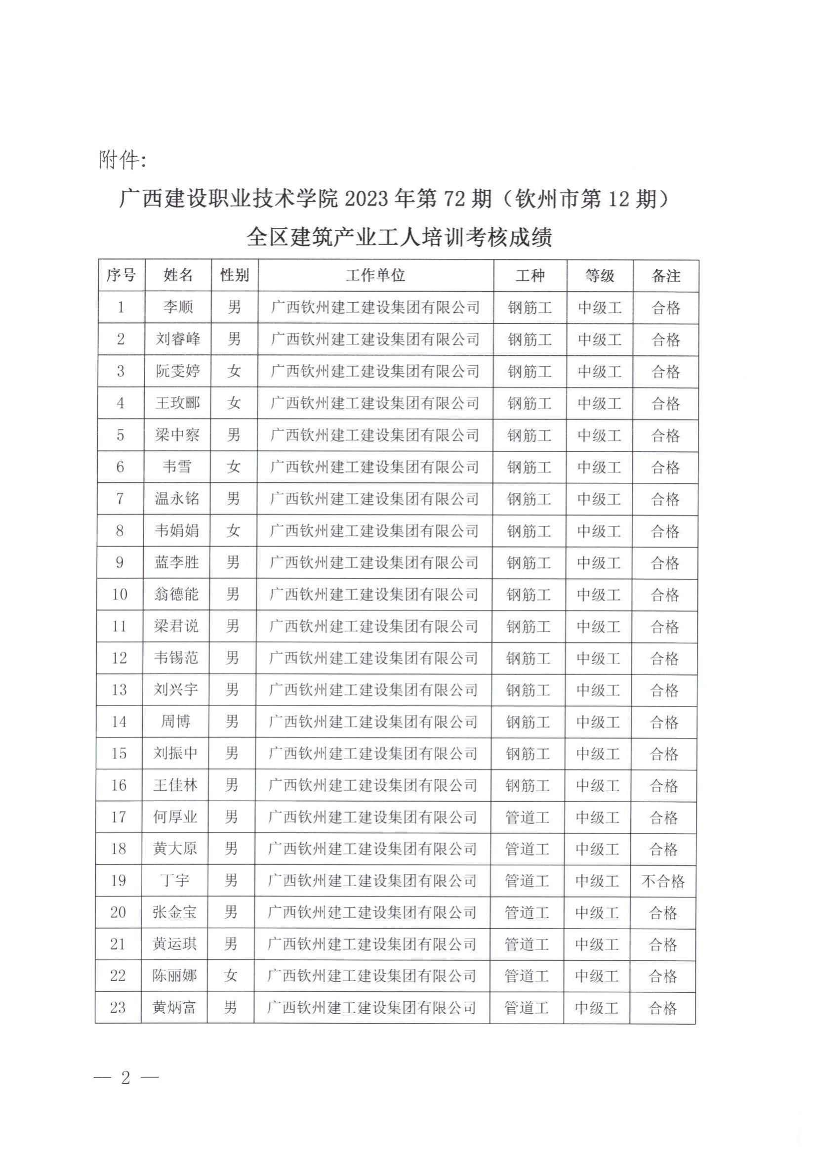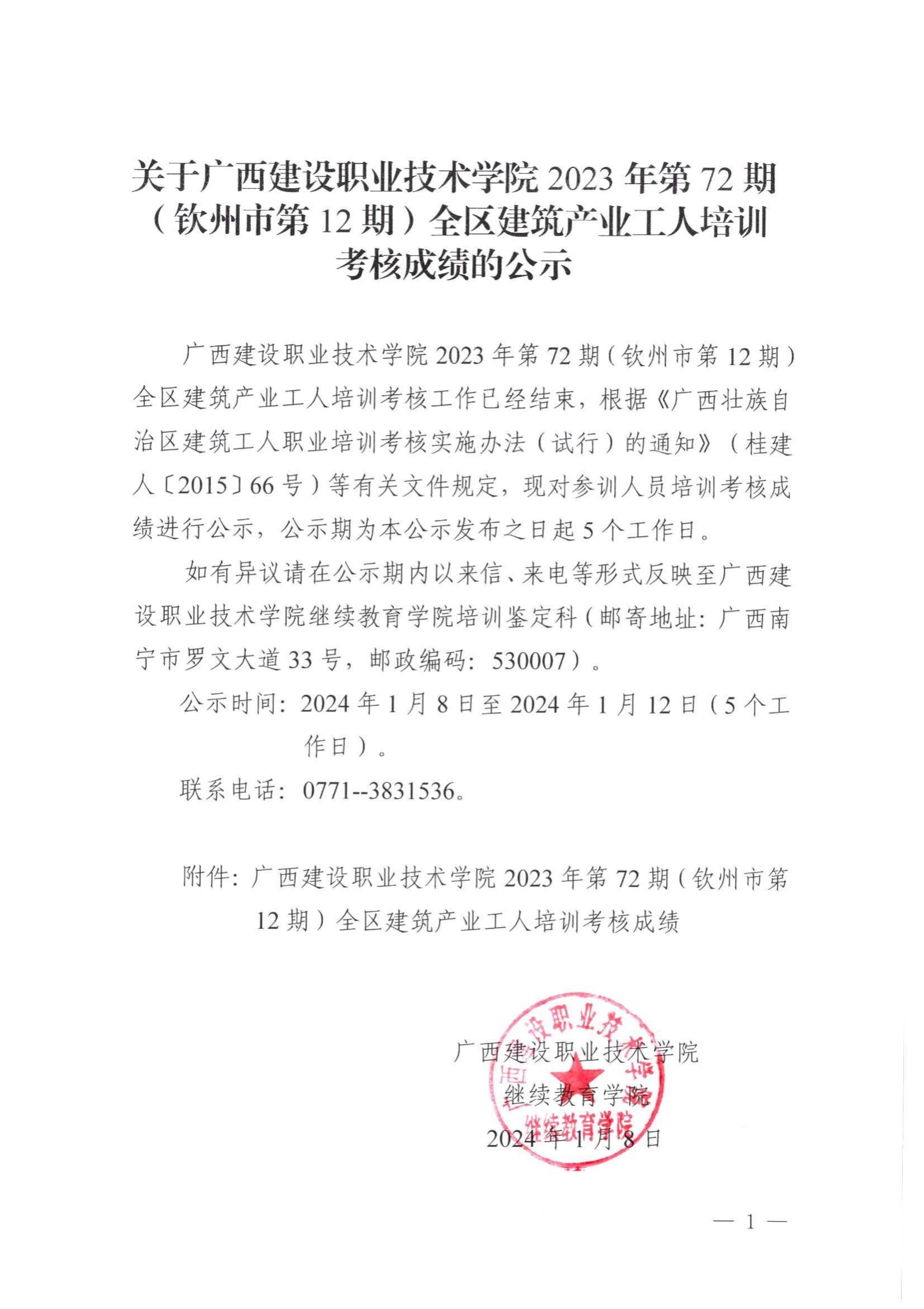 培训信息 当前位置: 首页 >> 培训信息 >> 正文 关于完美网页版2023年全区建筑产业工人第72期(钦州市第12期)培训考核成绩的公示 发布日期:2024-01-08 点击: 附件【关于完美网页版2023年全区建筑产业工人第72期(钦州市第12期)培训考核成绩的公示.pdf】已下载次