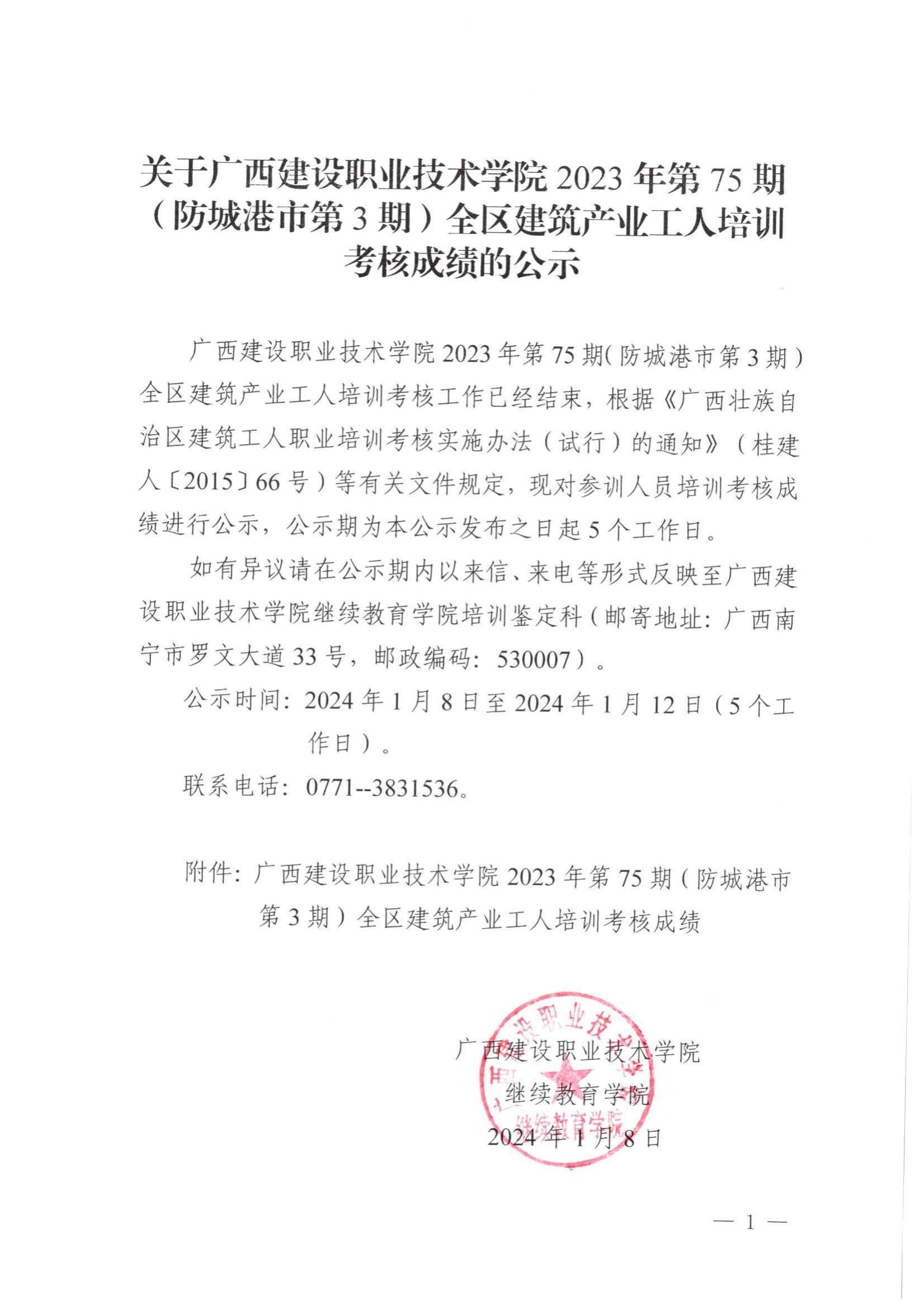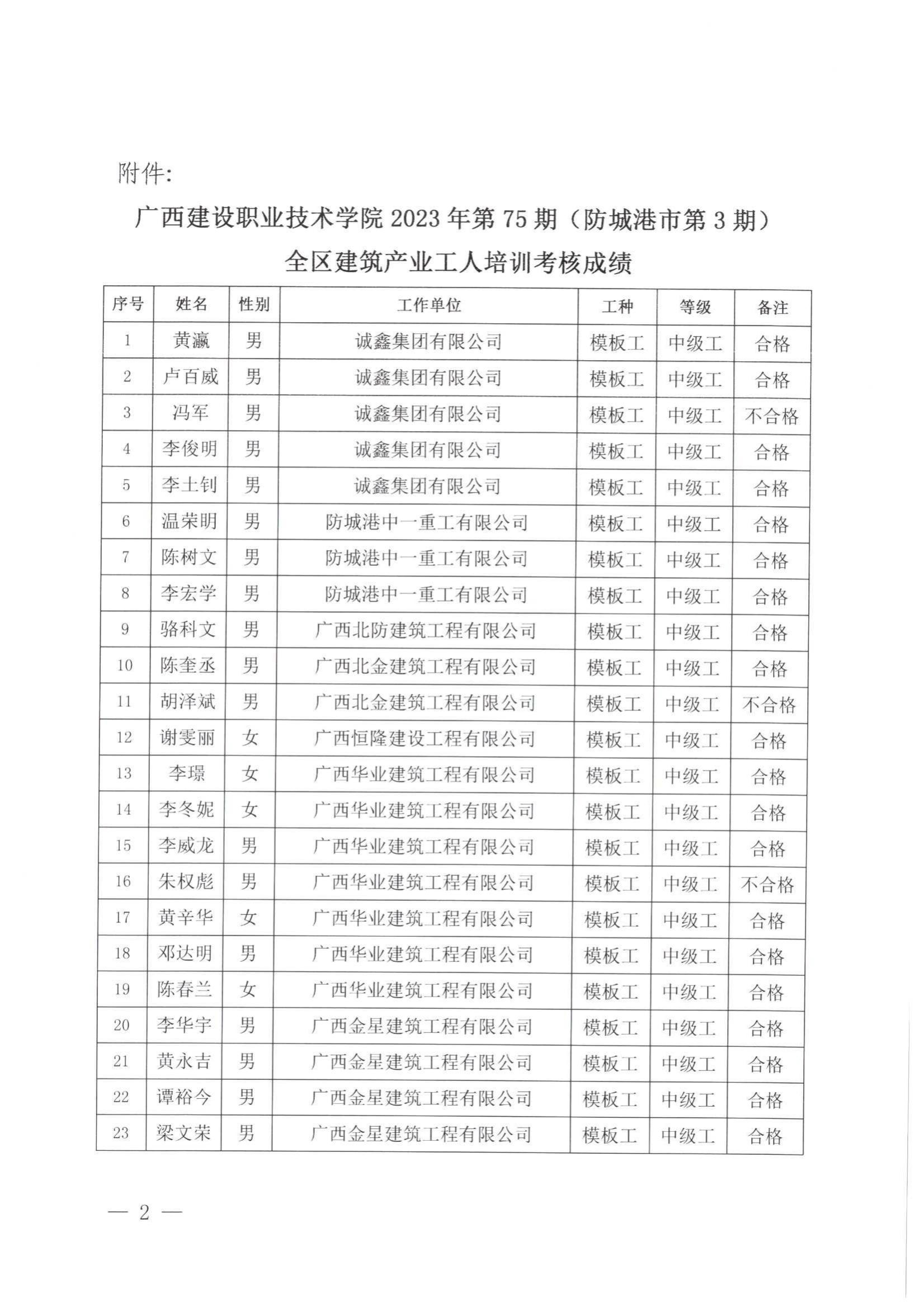 培训信息 当前位置: 首页 >> 培训信息 >> 正文 关于完美网页版2023年全区建筑产业工人第75期(防城港市第3期)培训考核成绩的公示 发布日期:2024-01-08 点击: 附件【关于完美网页版2023年全区建筑产业工人第75期(防城港市第3期)培训考核成绩的公示 .pdf】已下载次