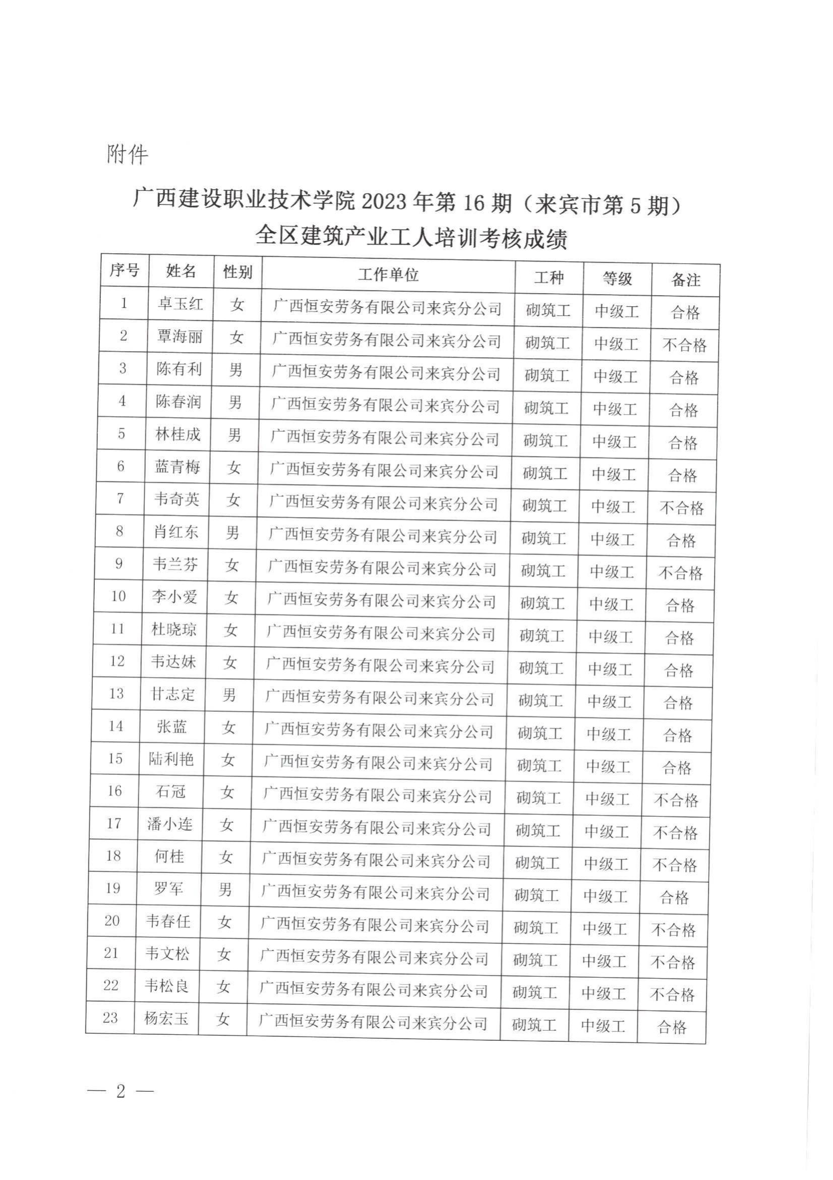 培训信息 当前位置: 首页 >> 培训信息 >> 正文 关于完美网页版2023年全区建筑产业工人第16期(来宾市第5期)培训考核成绩的公示 发布日期:2024-01-12 点击: 附件【关于完美网页版2023年全区建筑产业工人第16期(来宾市第5期)培训考核成绩的公示.pdf】已下载次