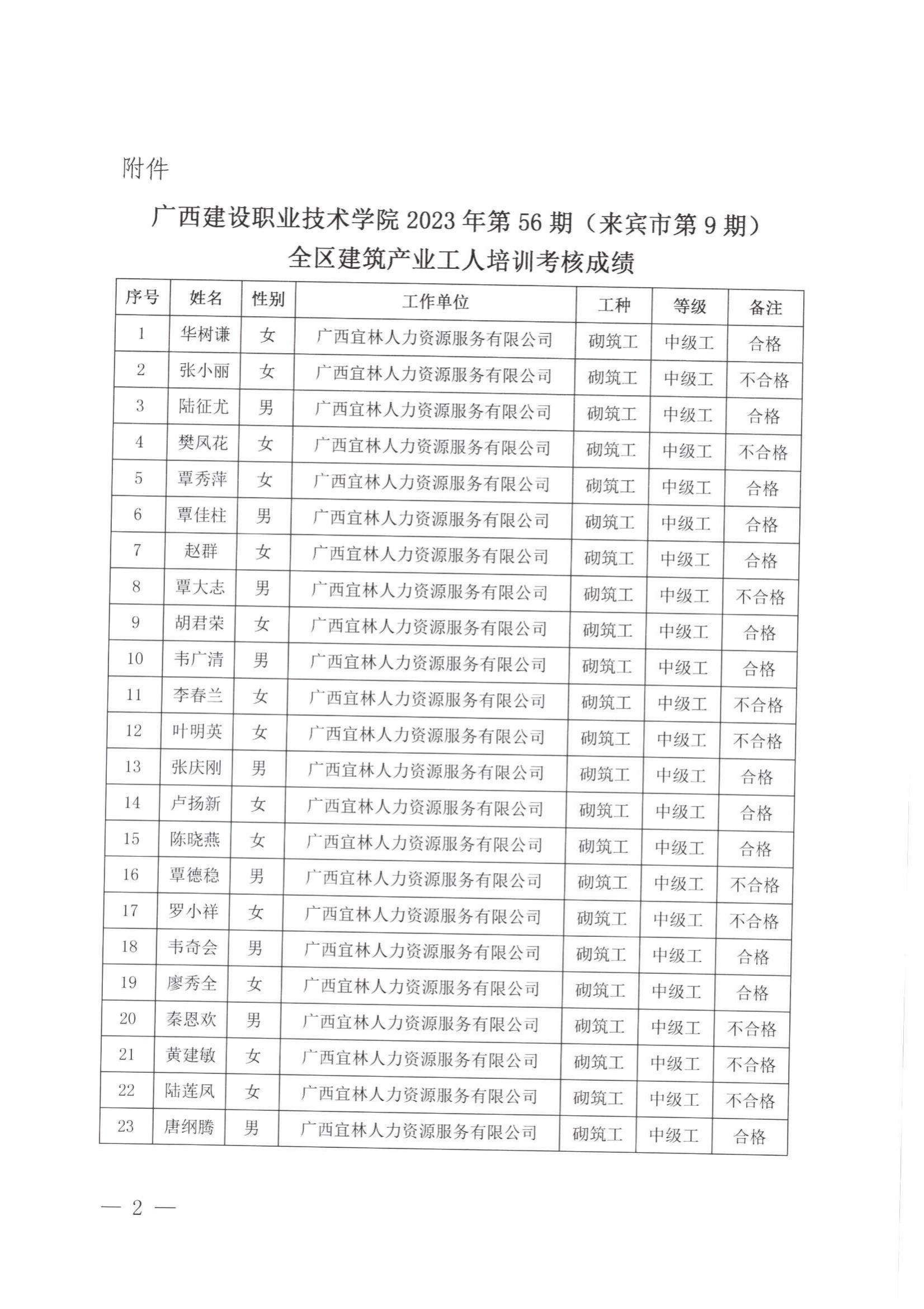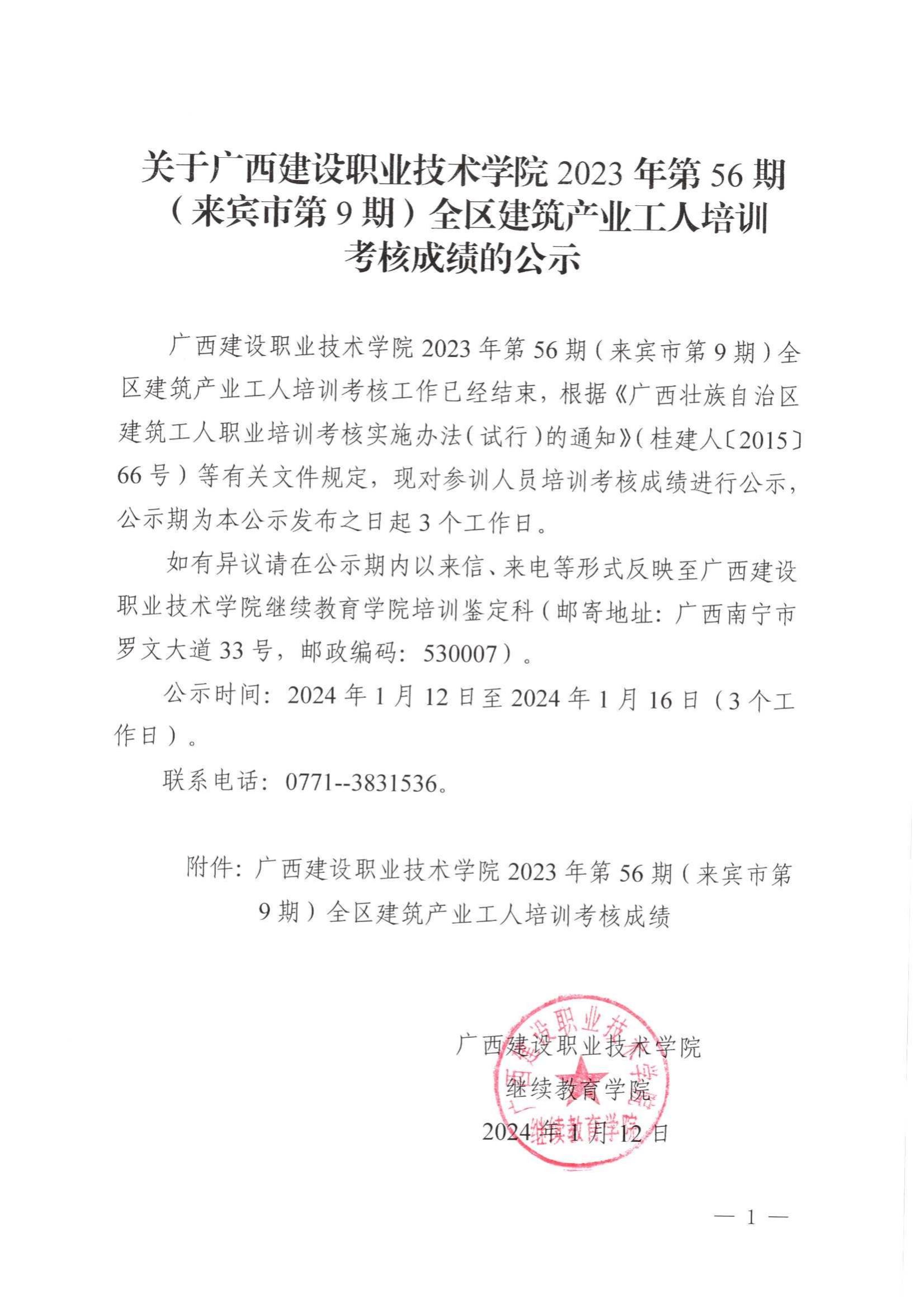 培训信息 当前位置: 首页 >> 培训信息 >> 正文 关于完美网页版2023年全区建筑产业工人第56期(来宾市第9期)培训考核成绩的公示 发布日期:2024-01-12 点击: 附件【关于完美网页版2023年全区建筑产业工人第56期(来宾市第9期)培训考核成绩的公示.pdf】已下载次