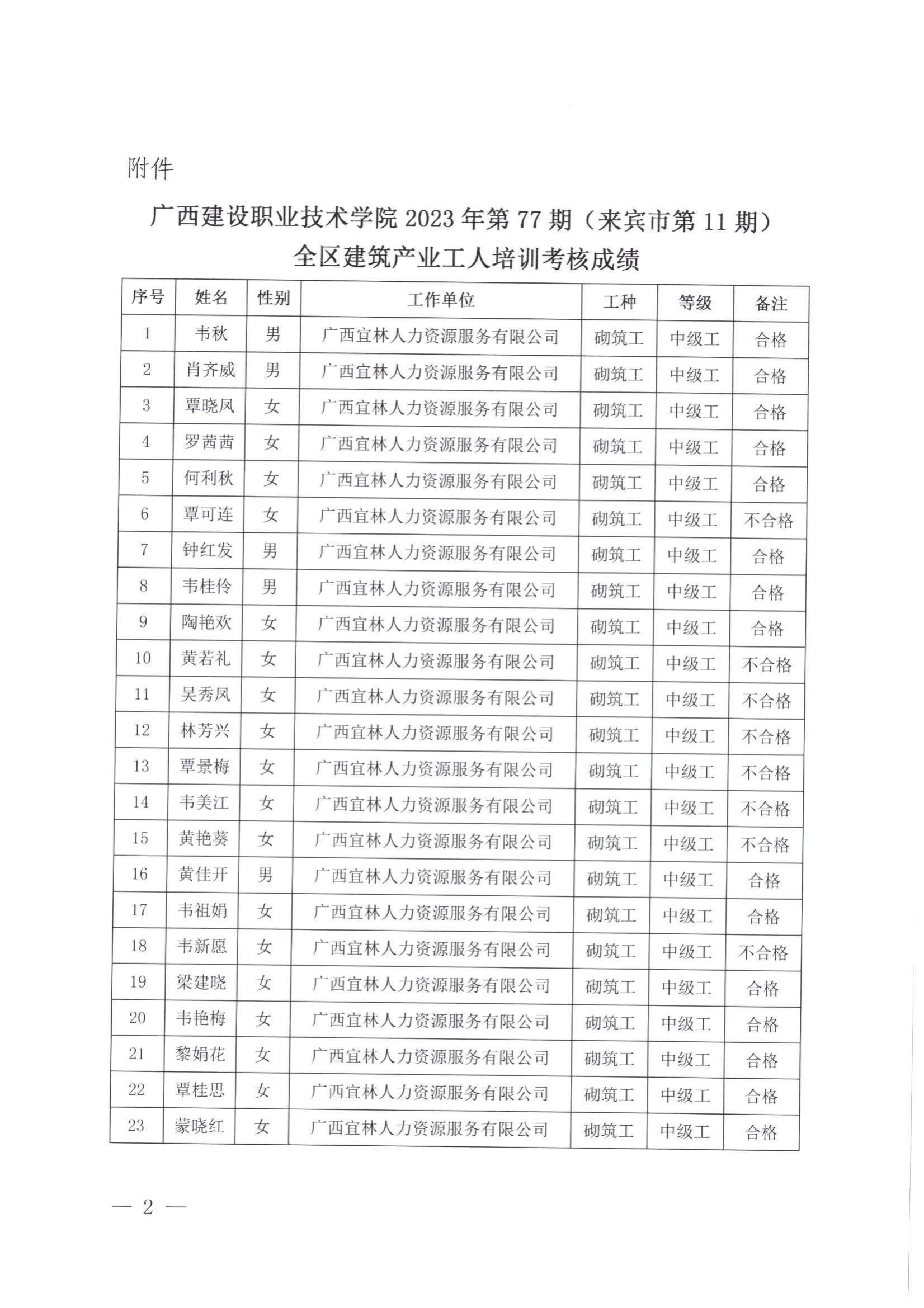培训信息 当前位置: 首页 >> 培训信息 >> 正文 关于完美网页版2023年全区建筑产业工人第77期(来宾市第11期)培训考核成绩的公示 发布日期:2024-01-12 点击: 附件【关于完美网页版2023年全区建筑产业工人第77期(来宾市第11期)培训考核成绩的公示.pdf】已下载次