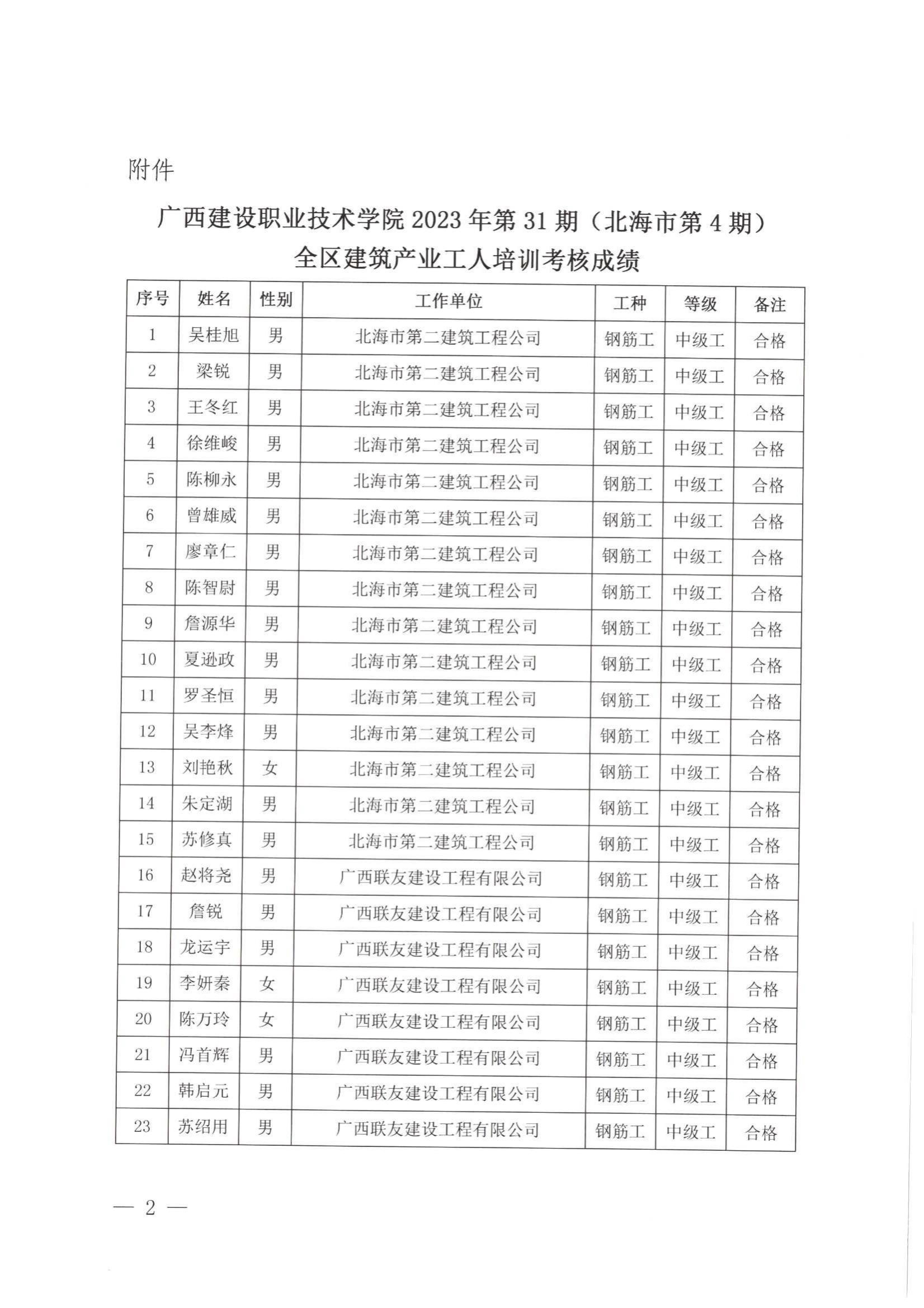 培训信息 当前位置: 首页 >> 培训信息 >> 正文 关于完美网页版2023年全区建筑产业工人第31期(北海市第4期)培训考核成绩的公示 发布日期:2024-01-23 点击: 附件【关于完美网页版2023年全区建筑产业工人第31期(北海市第4期)培训考核成绩的公示.pdf】已下载次