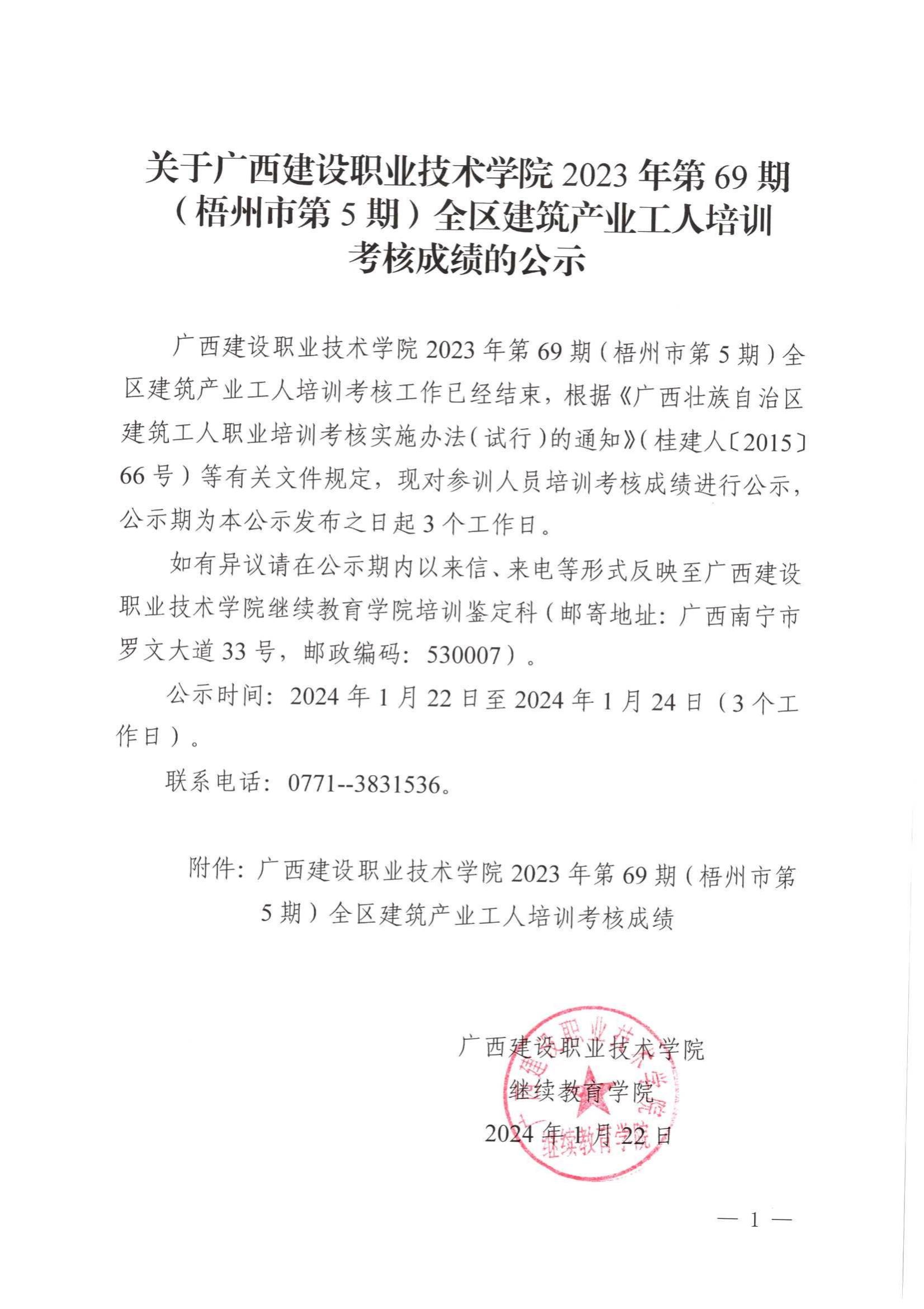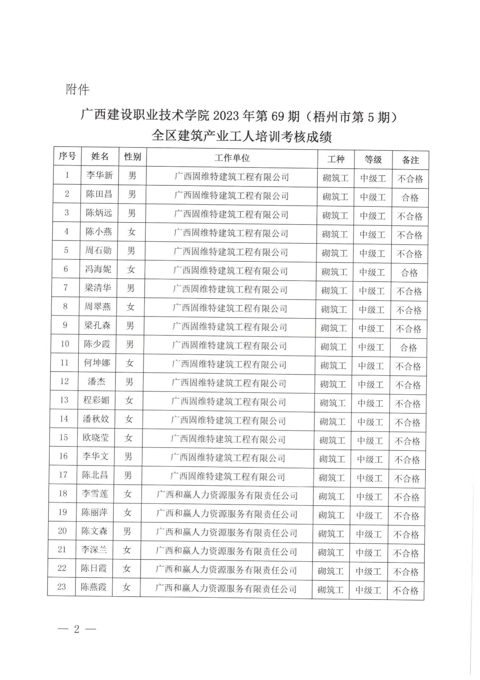 培训信息 当前位置: 首页 >> 培训信息 >> 正文 关于完美网页版2023年全区建筑产业工人第69期(梧州市第5期)培训考核成绩的公示 发布日期:2024-01-23 点击: 附件【关于完美网页版2023年全区建筑产业工人第69期(梧州市第5期)培训考核成绩的公示.pdf】已下载次