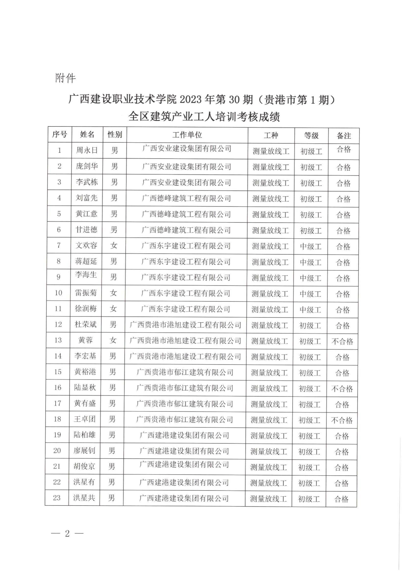 培训信息 当前位置: 首页 >> 培训信息 >> 正文 关于完美网页版2023年全区建筑产业工人第30期(贵港市第1期)培训考核成绩的公示 发布日期:2024-01-25 点击: 附件【关于完美网页版2023年全区建筑产业工人第30期(贵港市第1期)培训考核成绩的公示.pdf】已下载次