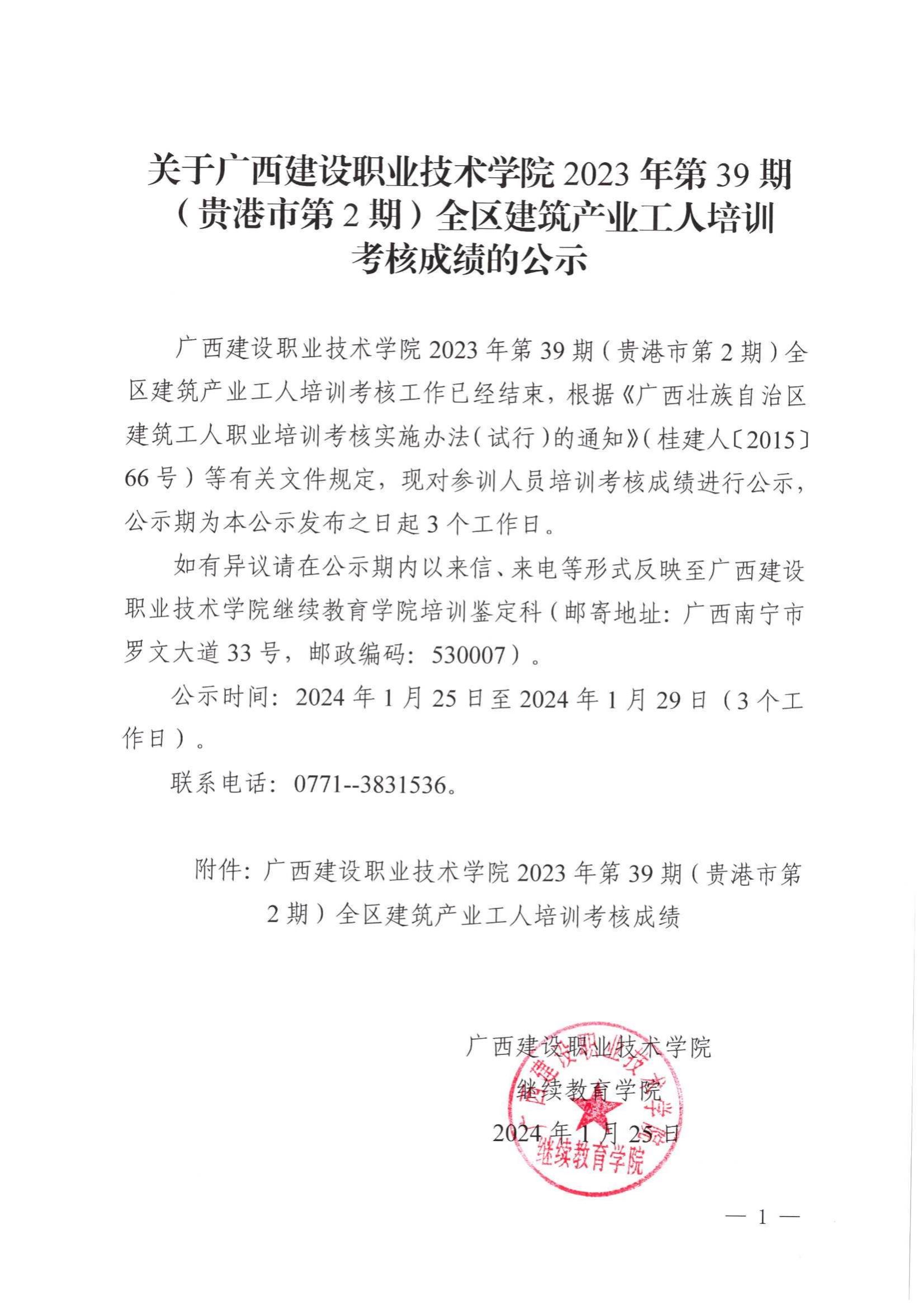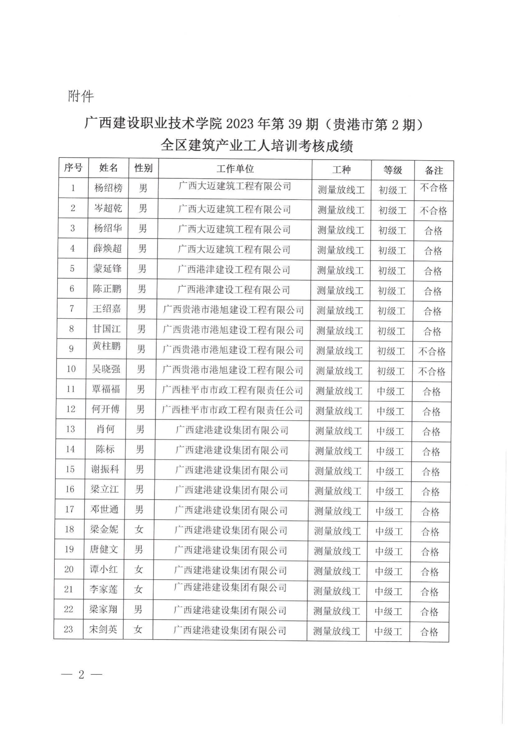 培训信息 当前位置: 首页 >> 培训信息 >> 正文 关于完美网页版2023年全区建筑产业工人第39期(贵港市第2期)培训考核成绩的公示 发布日期:2024-01-25 点击: 附件【关于完美网页版2023年全区建筑产业工人第39期(贵港市第2期)培训考核成绩的公示 .pdf】已下载次