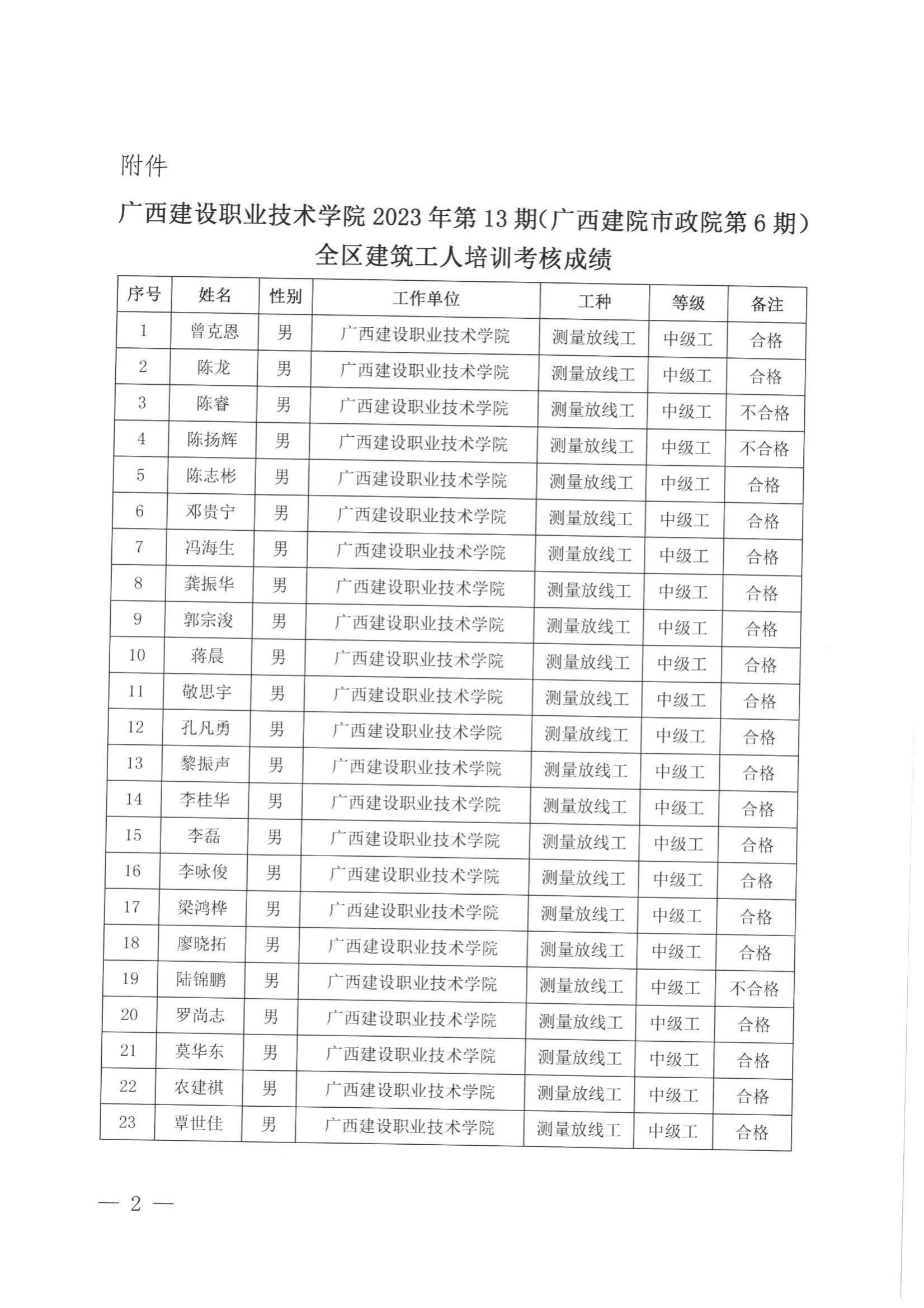 培训信息 当前位置: 首页 >> 培训信息 >> 正文 关于完美网页版2023年全区建筑工人第13期(广西建院市政院第6期)培训考核成绩的公示 发布日期:2024-01-25 点击: 附件【关于完美网页版2023年全区建筑工人第13期(广西建院市政院第6期)培训考核成绩的公示.pdf】已下载次