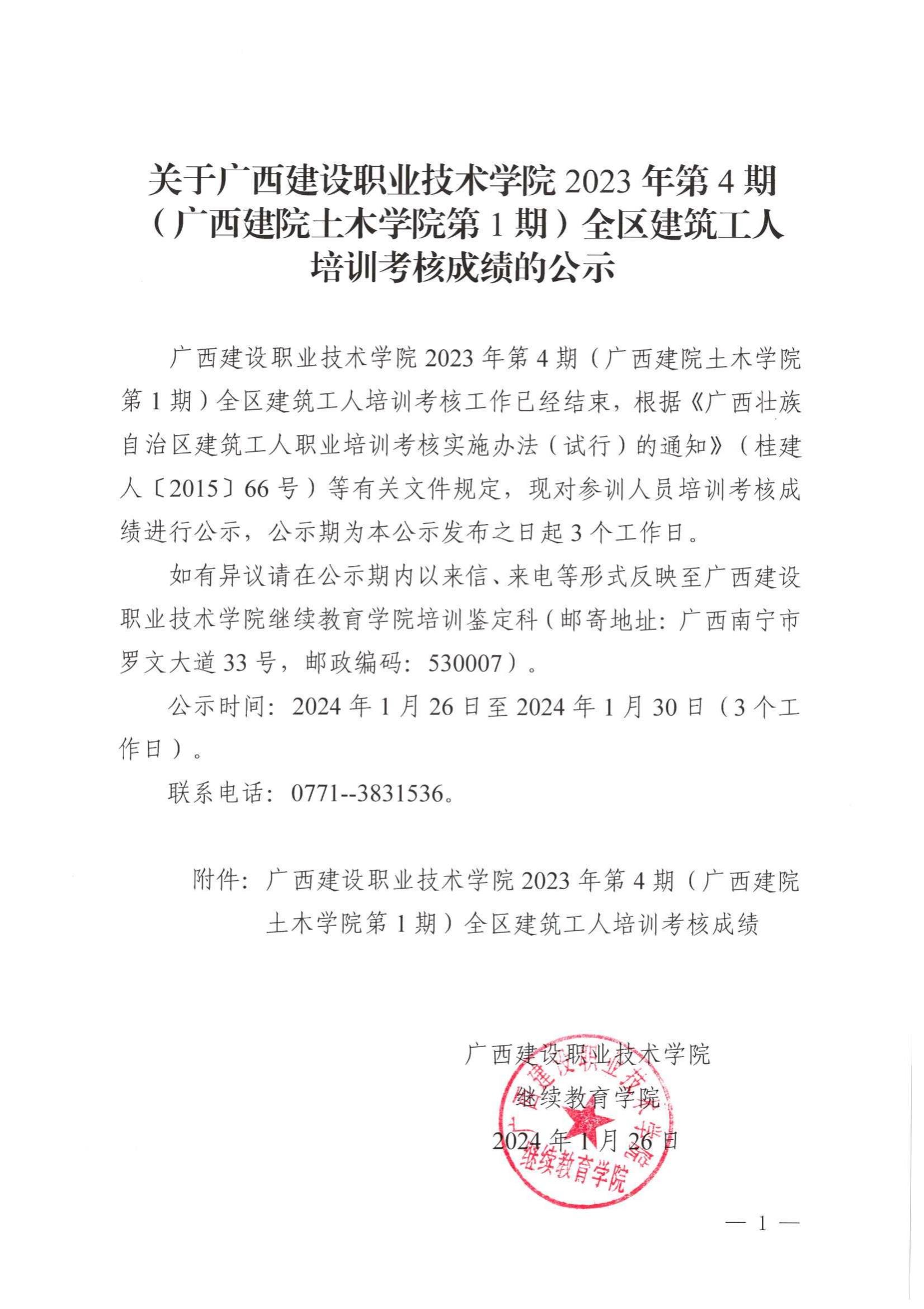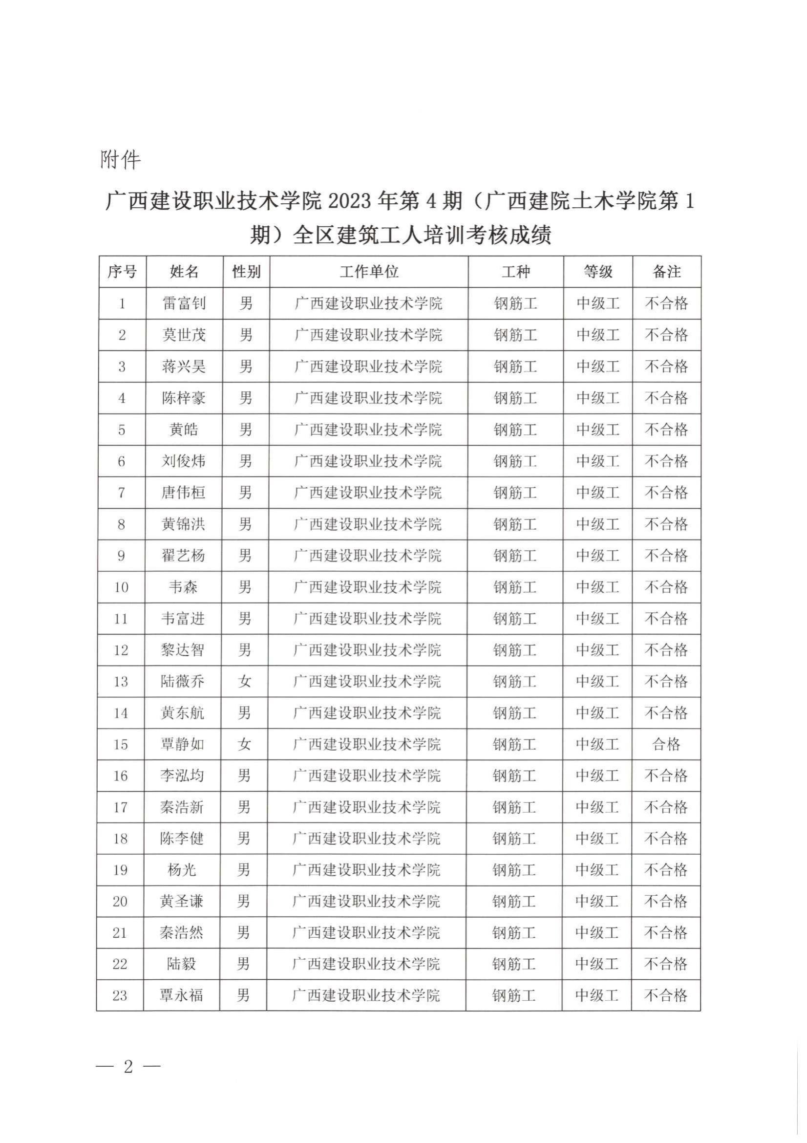 培训信息 当前位置: 首页 >> 培训信息 >> 正文 关于完美网页版2023年全区建筑工人第4期(广西建院土木学院第1期)培训考核成绩的公示 发布日期:2024-01-26 点击: 附件【关于完美网页版2023年全区建筑工人第4期(广西建院土木学院第1期)培训考核成绩的公示.pdf】已下载次