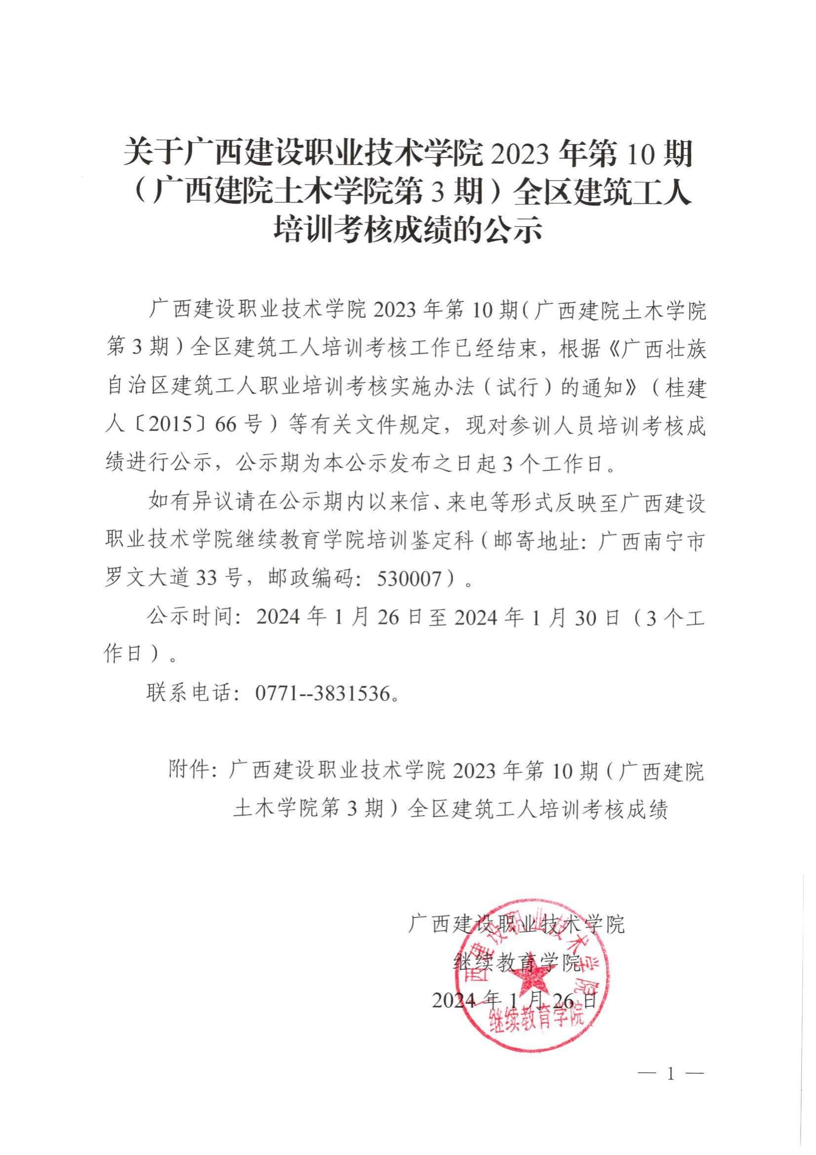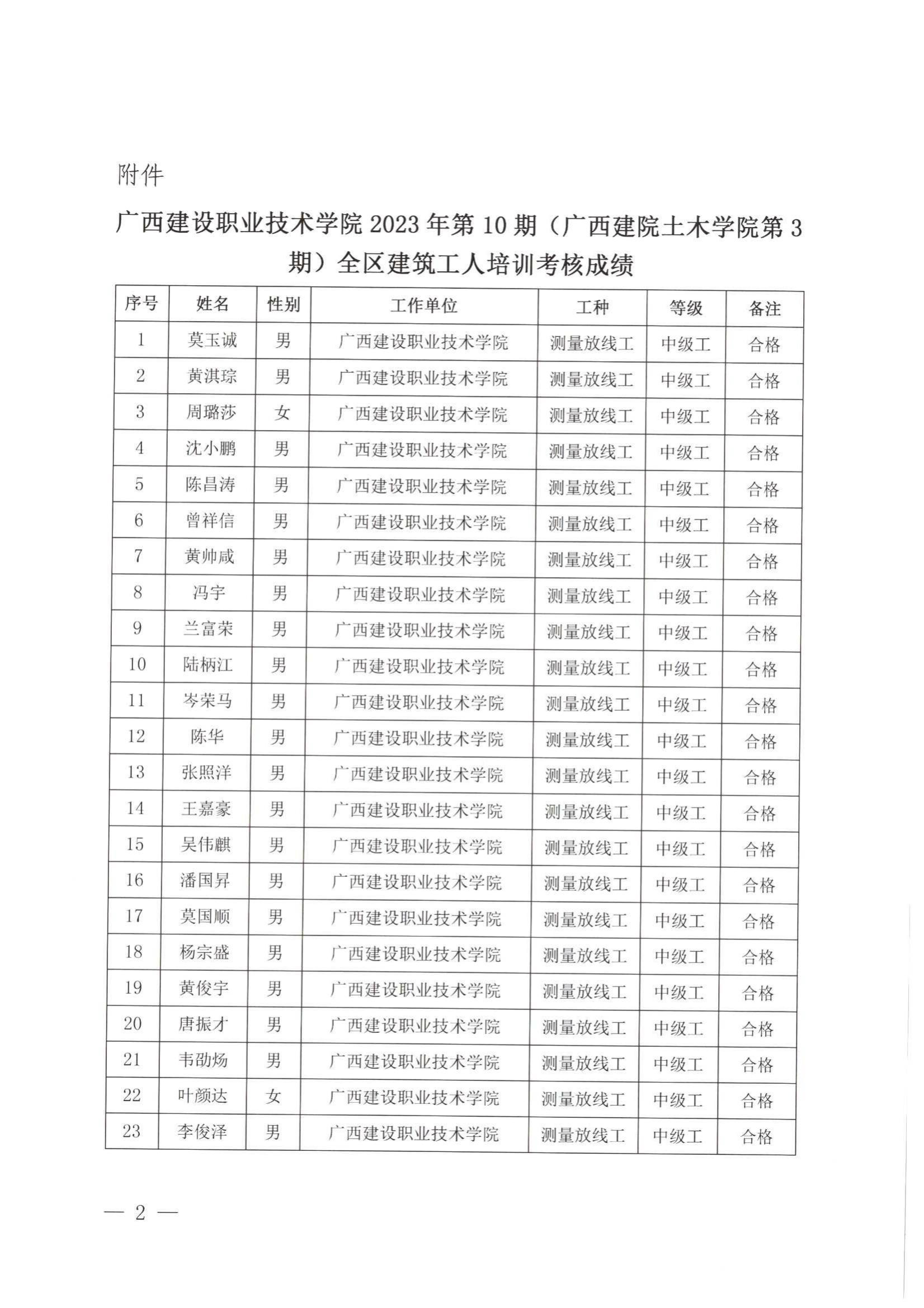 培训信息 当前位置: 首页 >> 培训信息 >> 正文 关于完美网页版2023年全区建筑工人第10期(广西建院土木学院第3期)培训考核成绩的公示 发布日期:2024-01-26 点击: 附件【关于完美网页版2023年全区建筑工人第10期(广西建院土木学院第3期)培训考核成绩的公示.pdf】已下载次