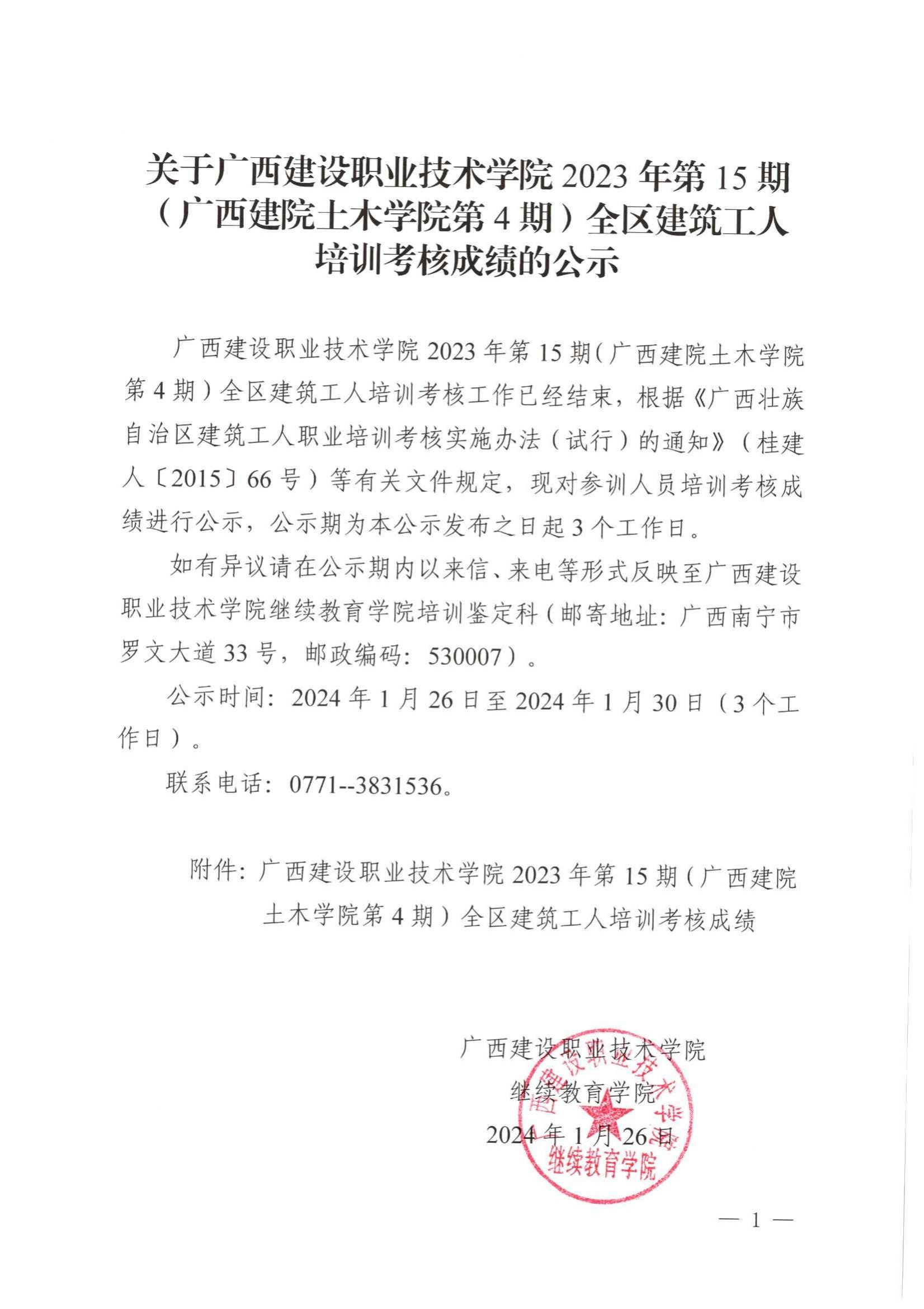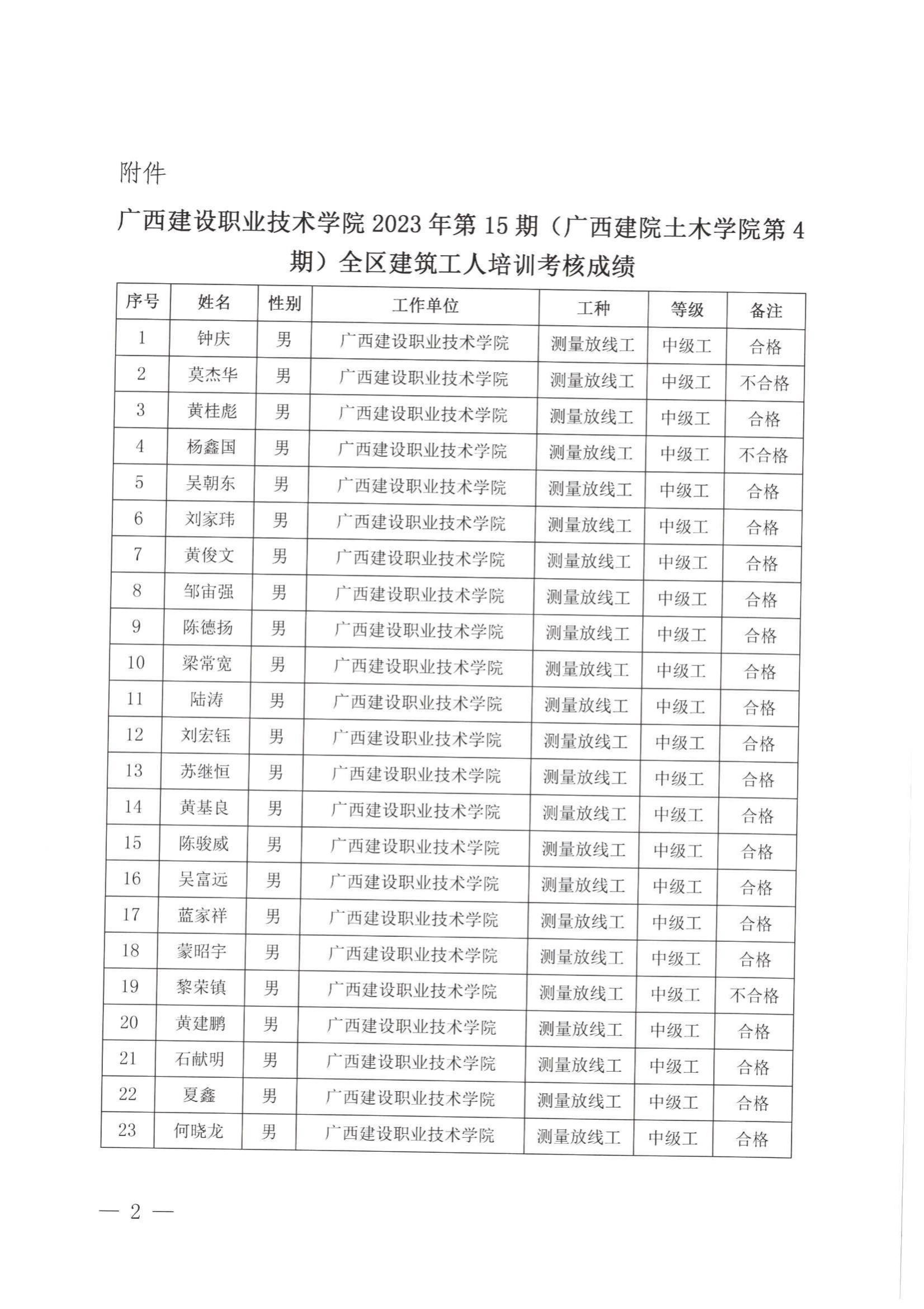 培训信息 当前位置: 首页 >> 培训信息 >> 正文 关于完美网页版2023年全区建筑工人第15期(广西建院土木学院第4期)培训考核成绩的公示 发布日期:2024-01-26 点击: 附件【关于完美网页版2023年全区建筑工人第15期(广西建院土木学院第4期)培训考核成绩的公示.pdf】已下载次