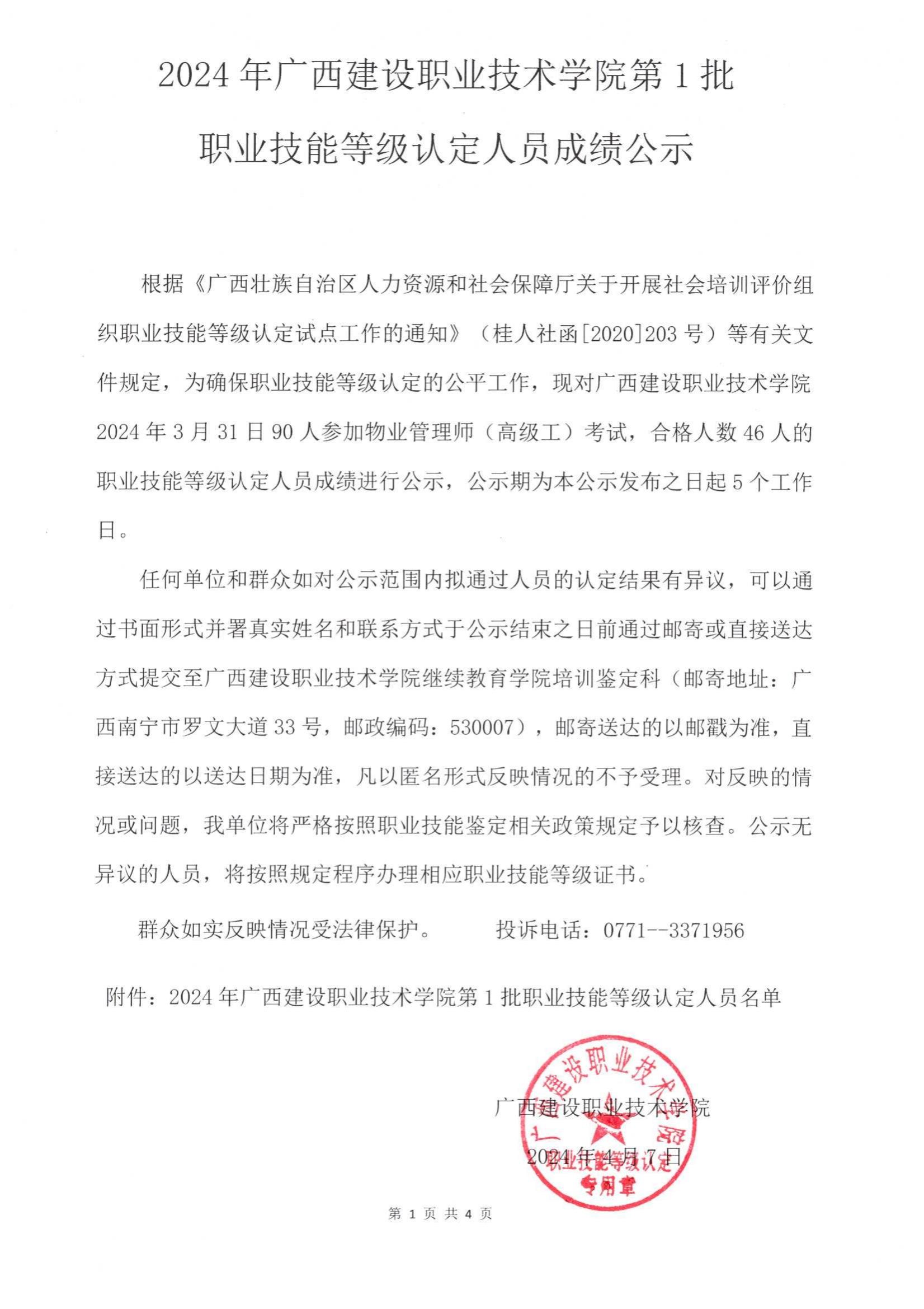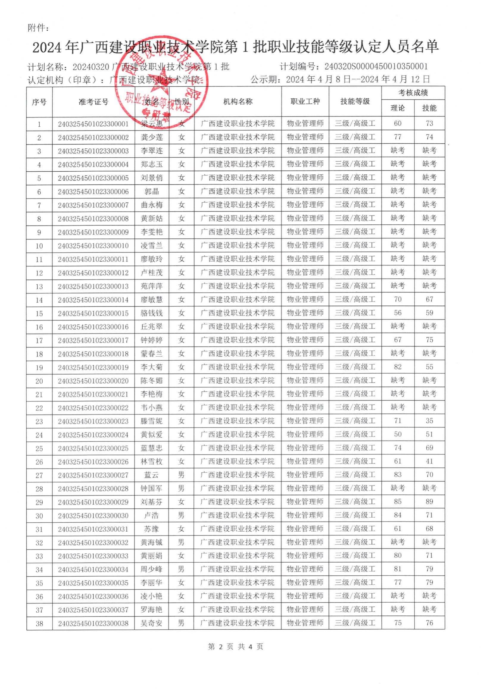 培训信息 当前位置: 首页 >> 培训信息 >> 正文 2024年完美网页版第1批职业技能等级认定人员成绩公示 发布日期:2024-04-08 点击: 附件【2024年完美网页版第1批职业技能等级认定人员成绩公示.pdf】已下载次