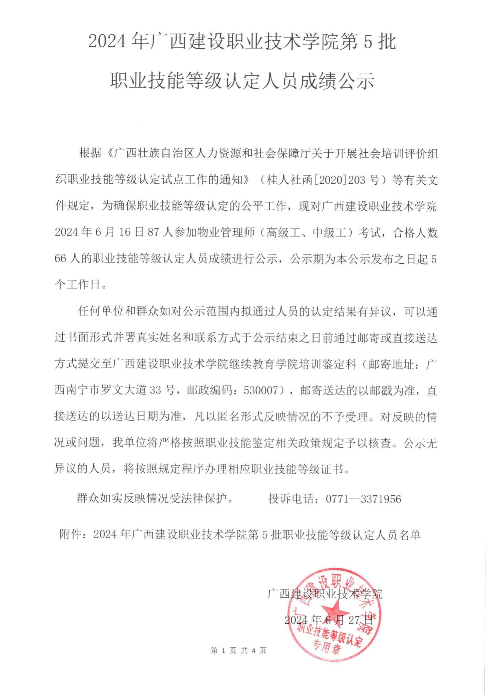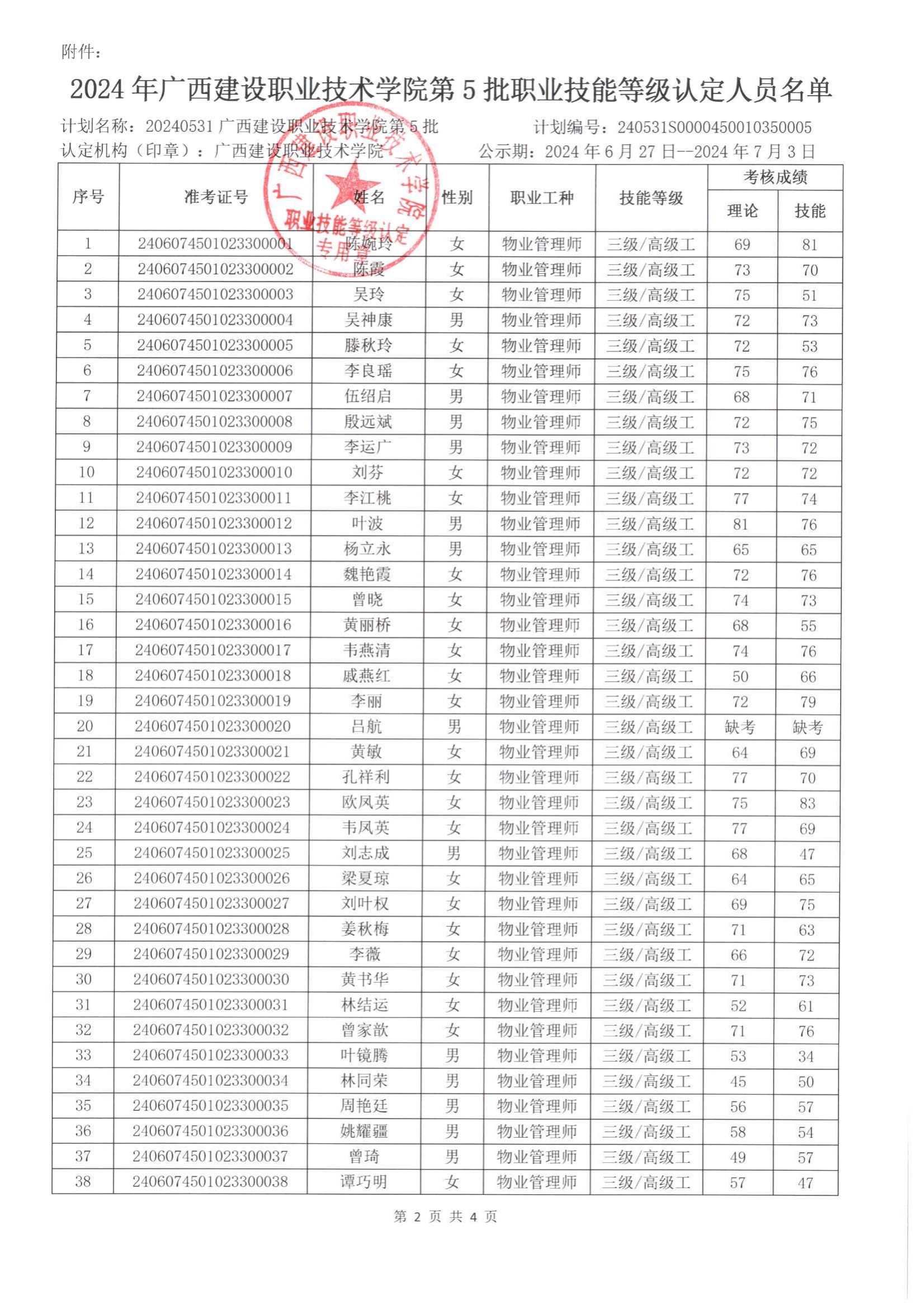 培训信息 当前位置: 首页 >> 培训信息 >> 正文 2024年完美网页版第5批职业技能等级认定人员成绩公示 发布日期:2024-06-27 点击: 附件【2024年完美网页版第5批职业技能等级认定人员成绩公示.pdf】已下载次