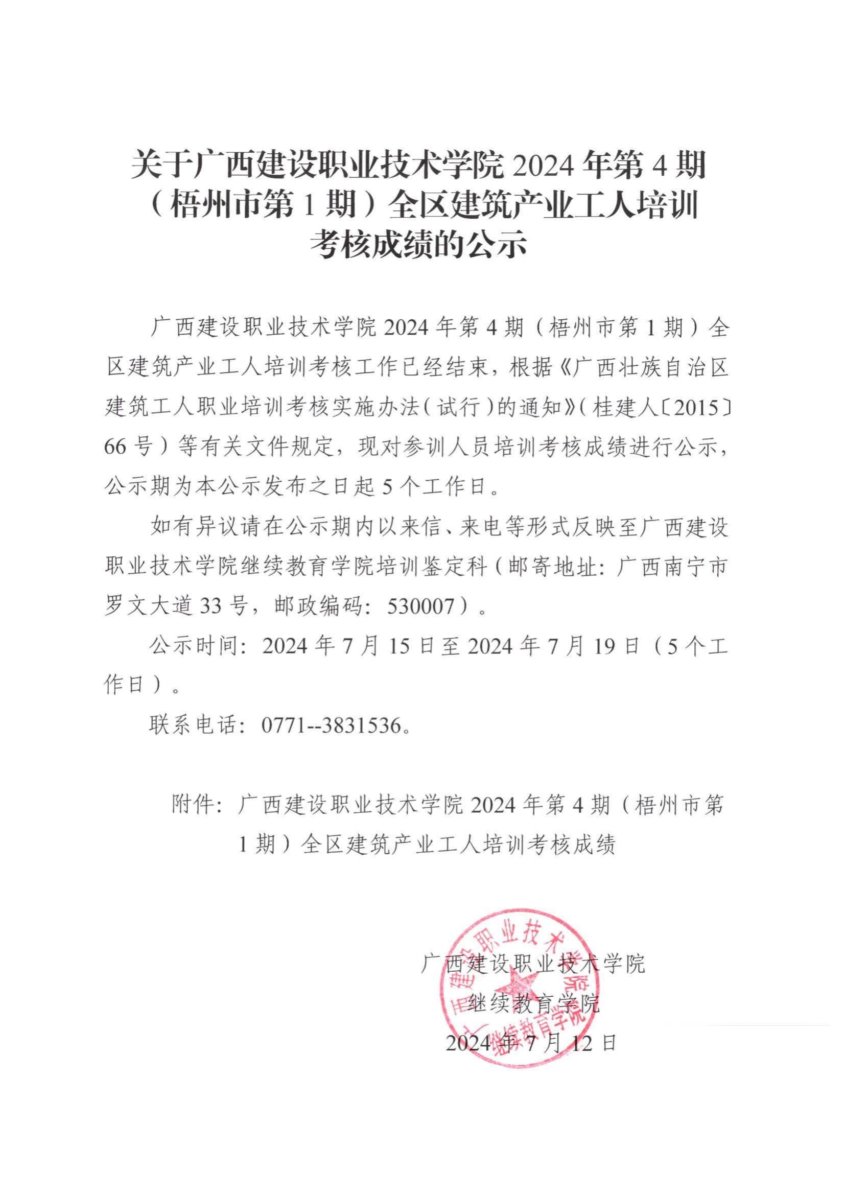 培训信息 当前位置: 首页 >> 培训信息 >> 正文 关于完美网页版2024年第4期(梧州市第1期)全区建筑产业工人培训考核成绩的公示 发布日期:2024-07-16 点击: 附件【关于完美网页版2024年第4期(梧州市第1期)全区建筑产业工人培训考核成绩的公示.pdf】已下载次
