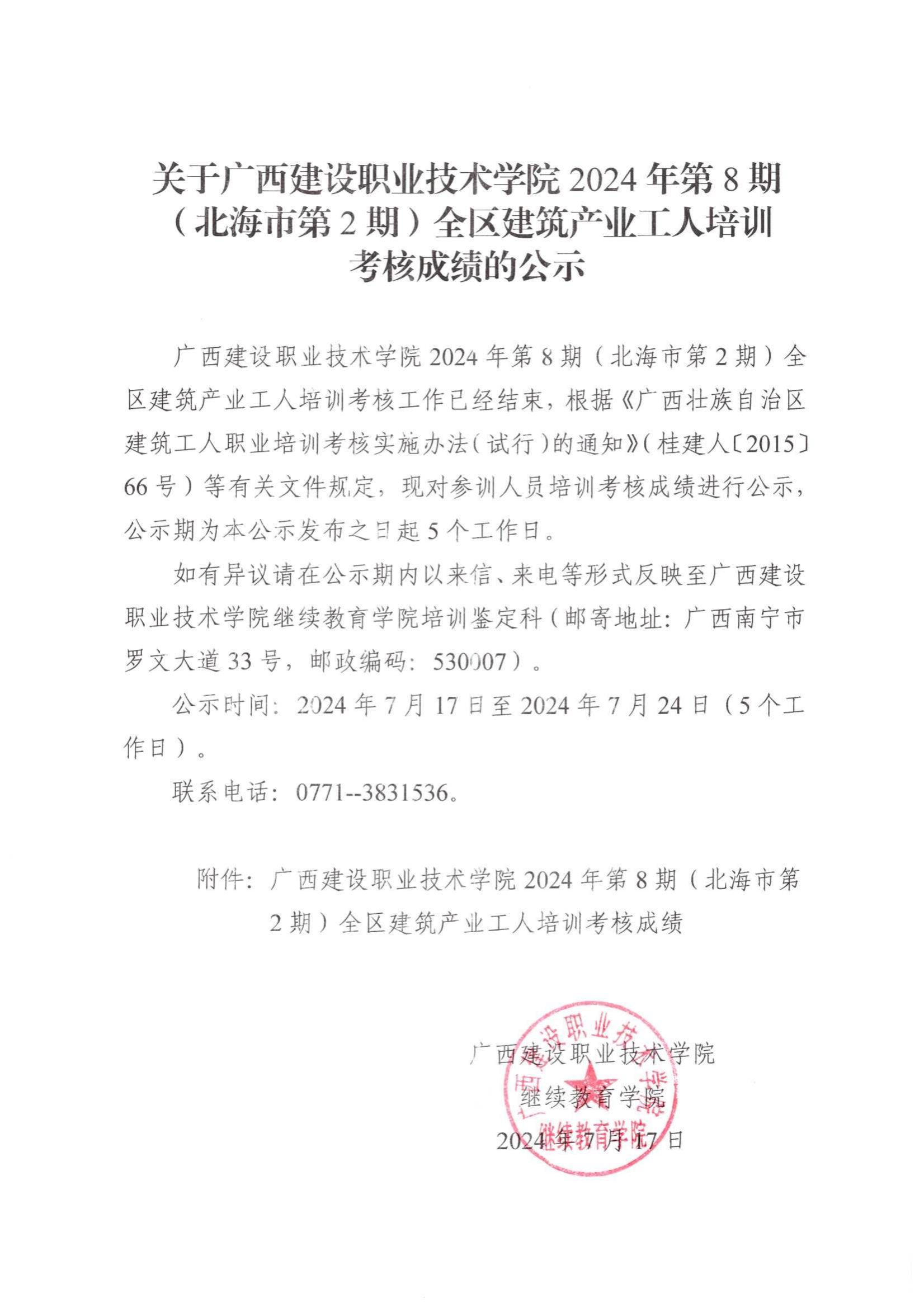 培训信息 当前位置: 首页 >> 培训信息 >> 正文 关于完美网页版2024年第8期(北海市第2期)全区建筑产业工人培训考核成绩的公示 发布日期:2024-07-16 点击: 附件【关于完美网页版2024年第8期(北海市第2期)全区建筑产业工人培训考核成绩的公示.pdf】已下载次