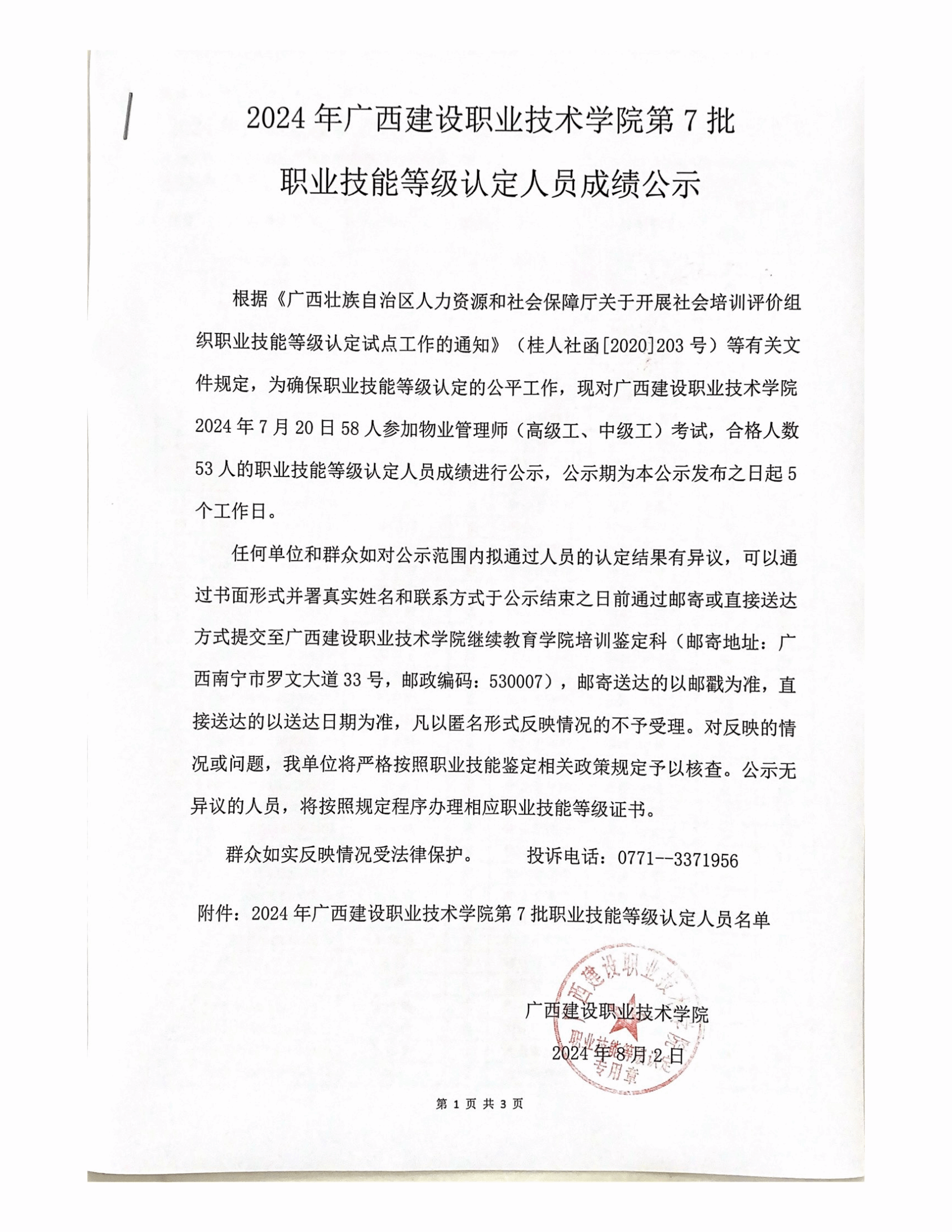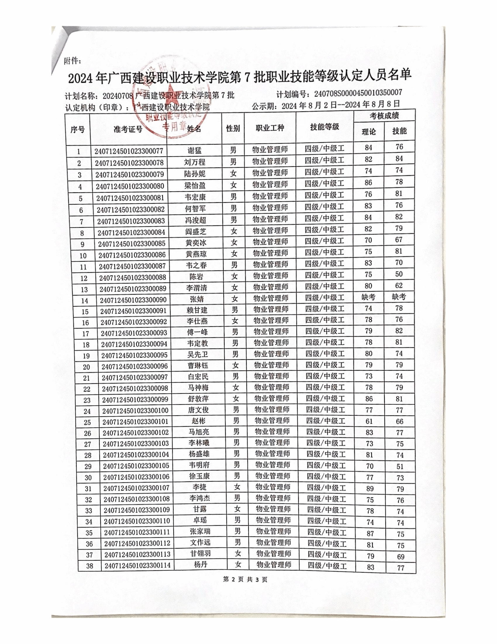 培训信息 当前位置: 首页 >> 培训信息 >> 正文 2024年完美网页版第7批职业技能等级认定人员成绩公示 发布日期:2024-08-03 点击: 附件【2024年完美网页版第7批职业技能等级认定人员成绩公示.pdf】已下载次