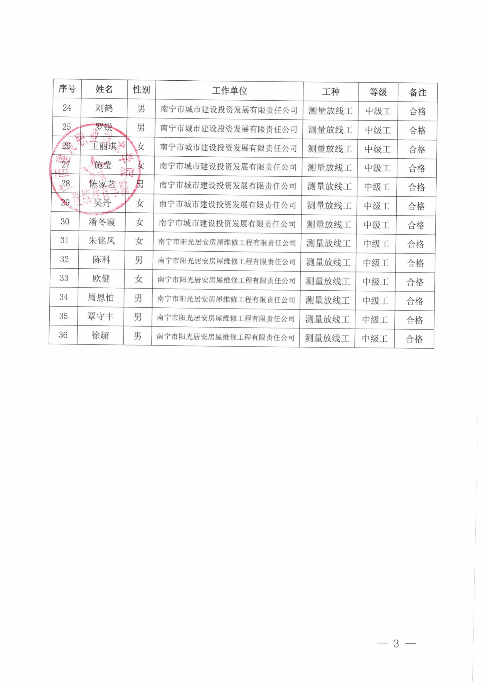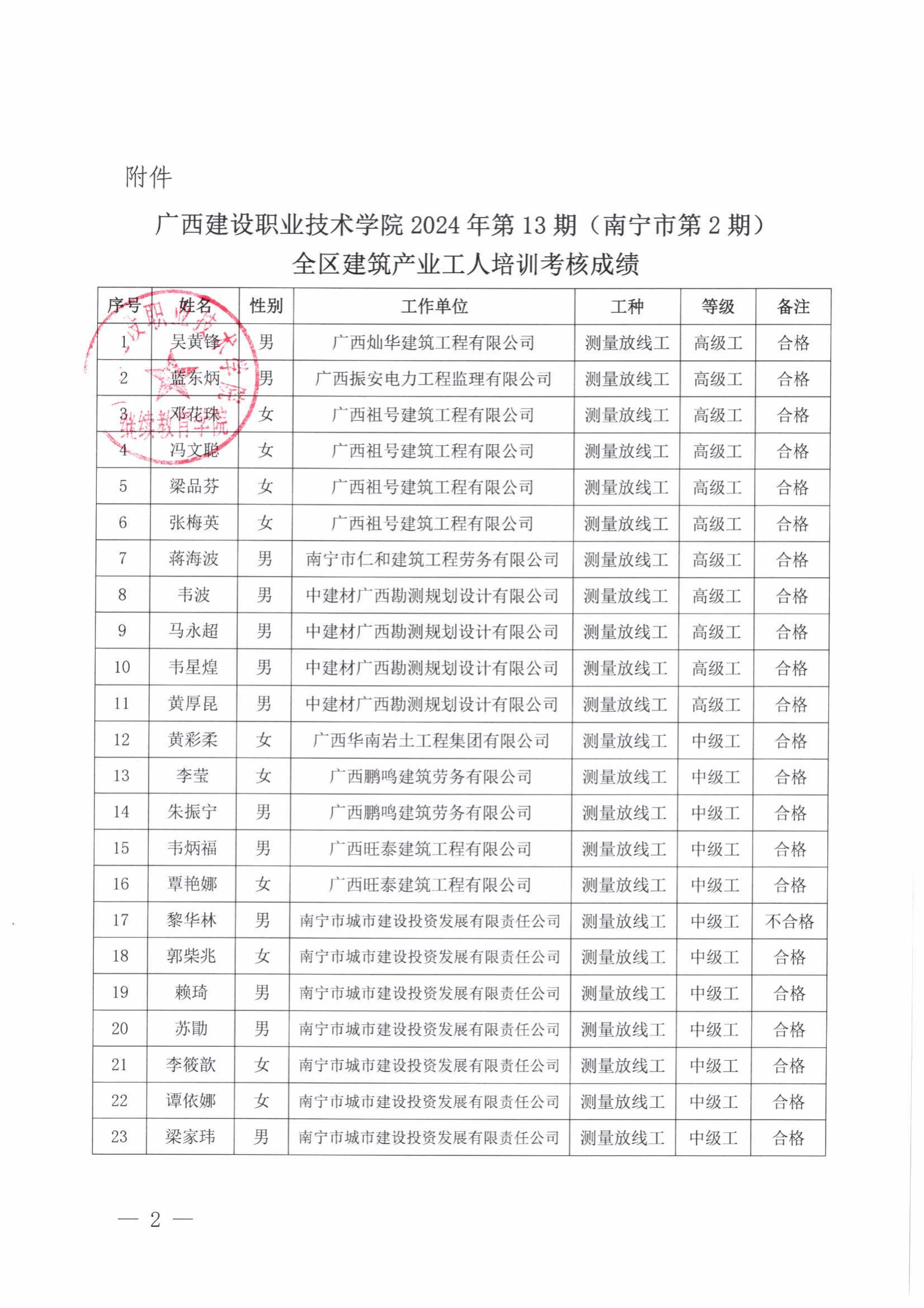 培训信息 当前位置: 首页 >> 培训信息 >> 正文 关于完美网页版2024年第13期(南宁市第2期)全区建筑产业工人培训考核成绩的公示 发布日期:2024-08-09 点击: 附件【关于完美网页版2024年第13期(南宁市第2期)全区建筑产业工人培训考核成绩的公示.pdf】已下载次