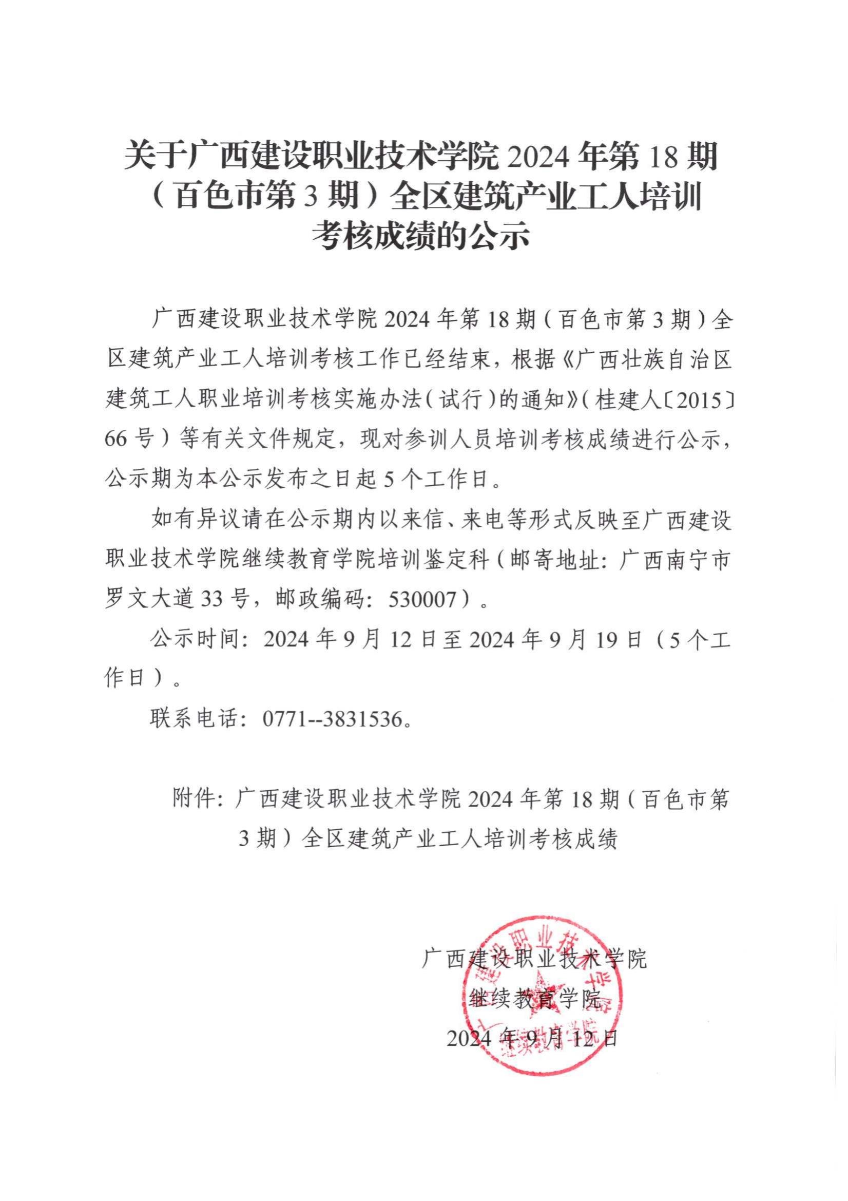 培训信息 当前位置: 首页 >> 培训信息 >> 正文 关于完美网页版2024年第18期(百色市第3期)全区建筑产业工人培训考核成绩的公示 发布日期:2024-09-12 点击: 附件【关于完美网页版2024年第18期(百色市第3期)全区建筑产业工人培训考核成绩的公示.pdf】已下载次