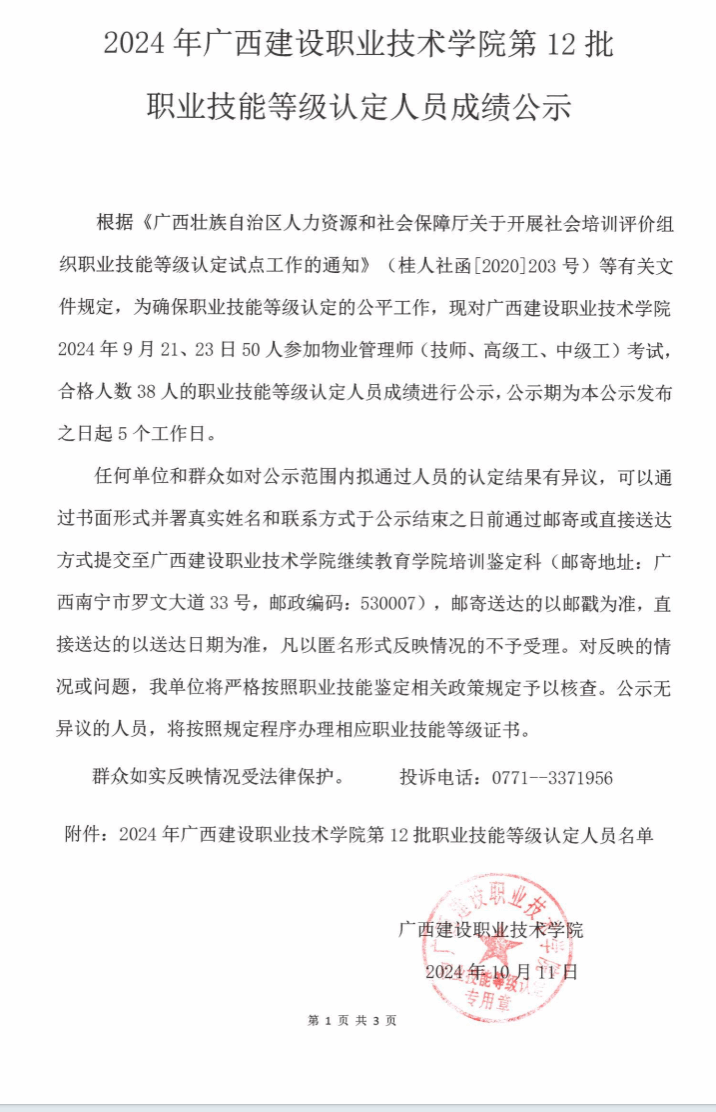 培训信息 当前位置: 首页 >> 培训信息 >> 正文 2024年完美网页版第12批职业技能等级认定人员成绩公示 发布日期:2024-10-11 点击: 附件【2024年完美网页版第12批职业技能等级认定人员成绩公示.pdf】已下载次
