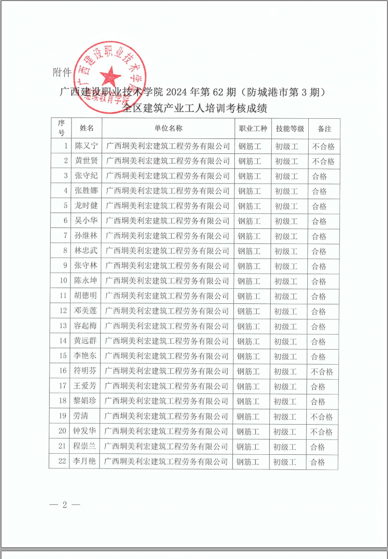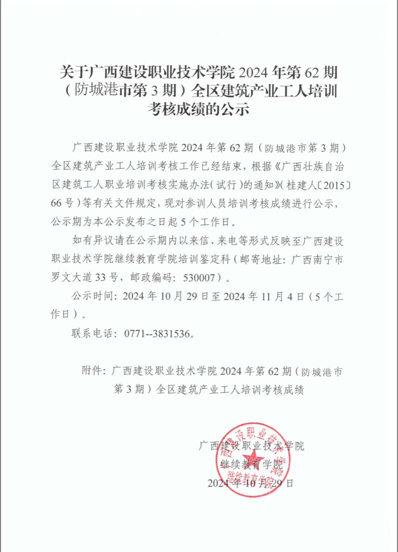 培训信息 当前位置: 首页 >> 培训信息 >> 正文 关于完美网页版2024年全区建筑产业工人第62期(防城港市第3期)培训考核成绩的公示 发布日期:2024-10-29 点击: 附件【关于完美网页版2024年全区建筑产业工人第62期(防城港市第3期)培训考核成绩的公示.pdf】已下载次
