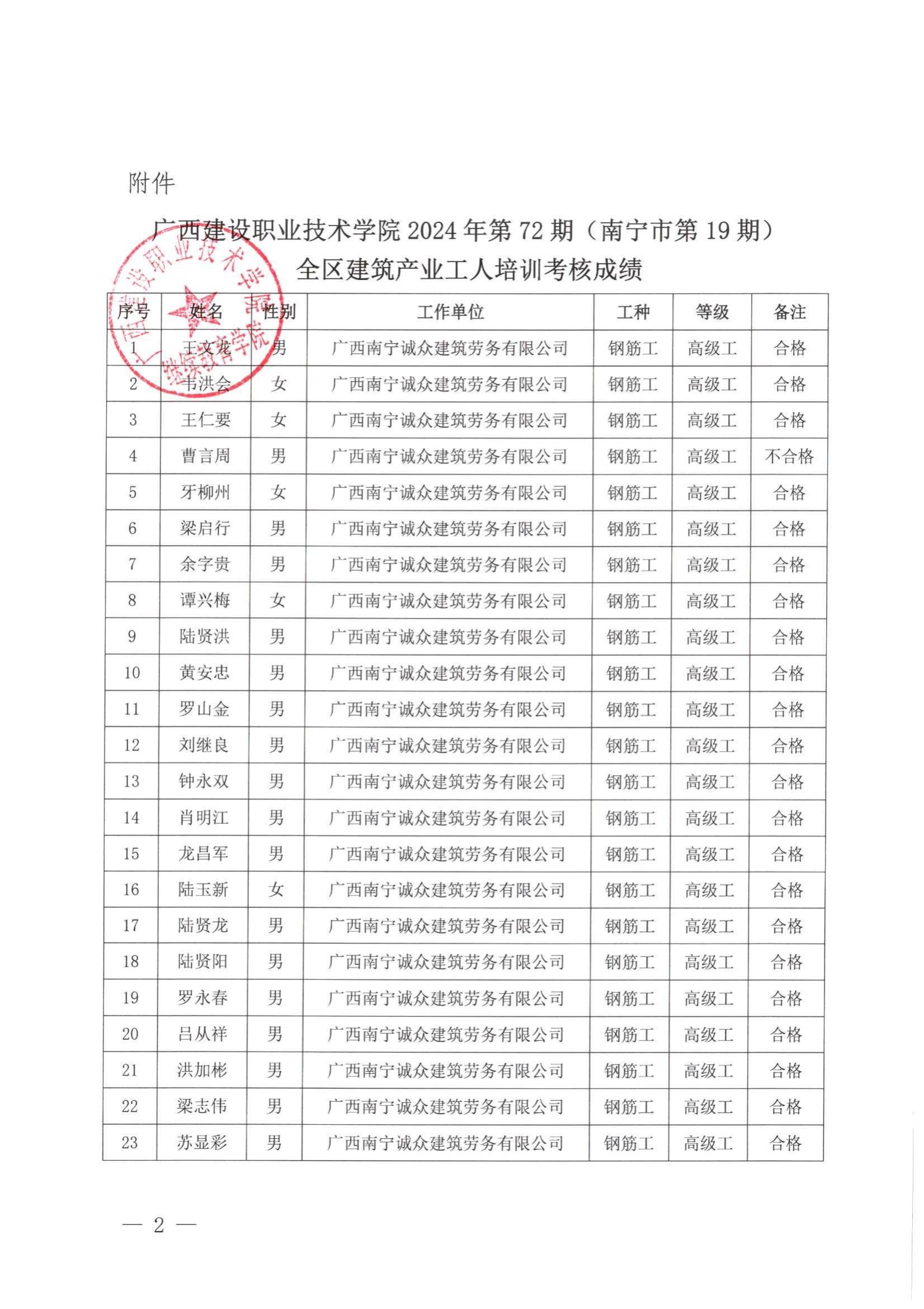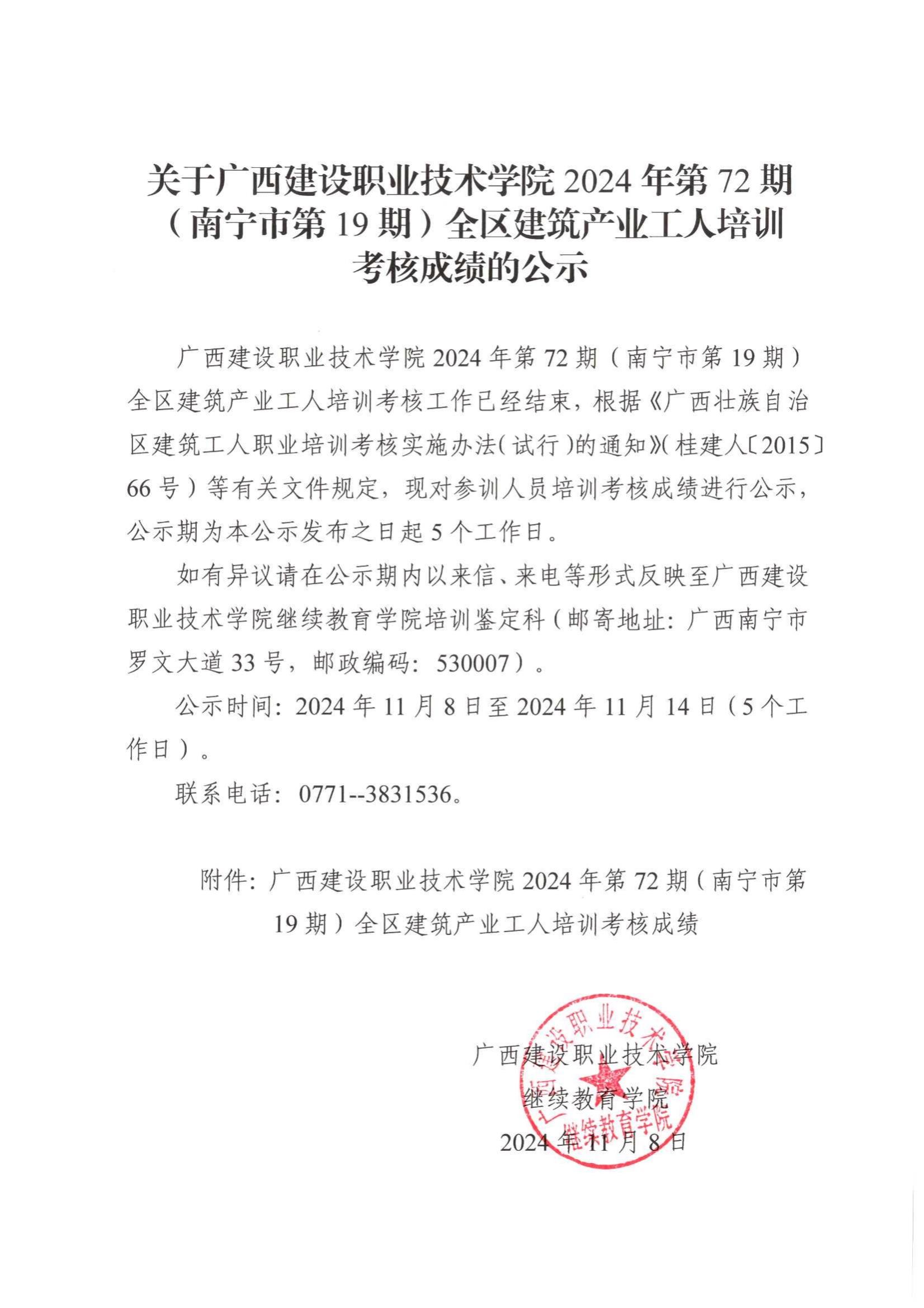 培训信息 当前位置: 首页 >> 培训信息 >> 正文 关于完美网页版2024年第72期(南宁市第19期)全区建筑产业工人培训考核成绩的公示 发布日期:2024-11-08 点击: 附件【关于完美网页版2024年第72期(南宁市第19期)全区建筑产业工人培训考核成绩的公示.pdf】已下载次