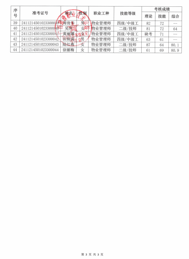 培训信息 当前位置: 首页 >> 培训信息 >> 正文 2024年完美网页版第16批职业技能等级认定人员成绩公示 发布日期:2024-12-12 点击: 附件【2024年完美网页版第16批职业技能等级认定人员成绩公示.pdf】已下载次