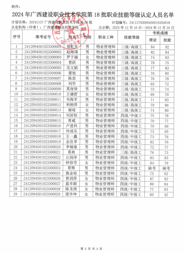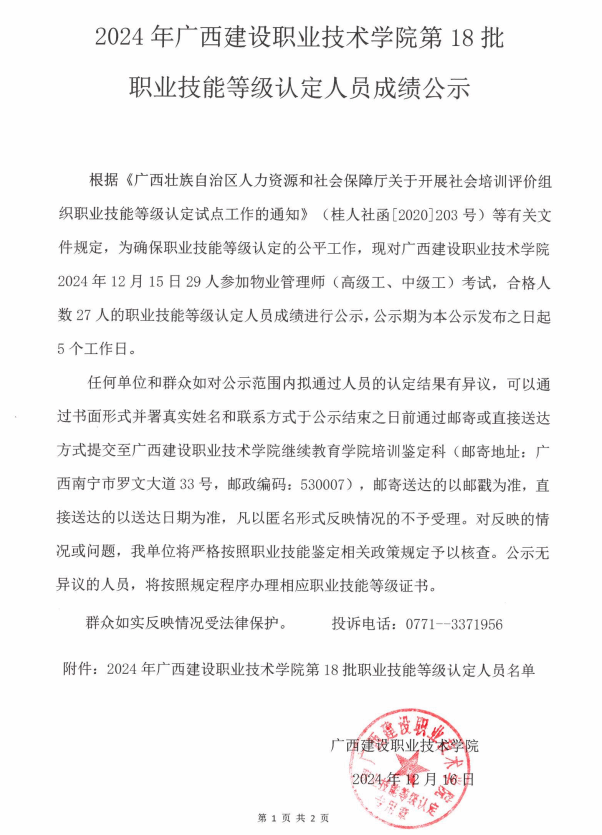 培训信息 当前位置: 首页 >> 培训信息 >> 正文 2024年完美网页版第18批职业技能等级认定人员成绩公示 发布日期:2024-12-18 点击: 附件【2024年完美网页版第18批职业技能等级认定人员成绩公示.pdf】已下载次