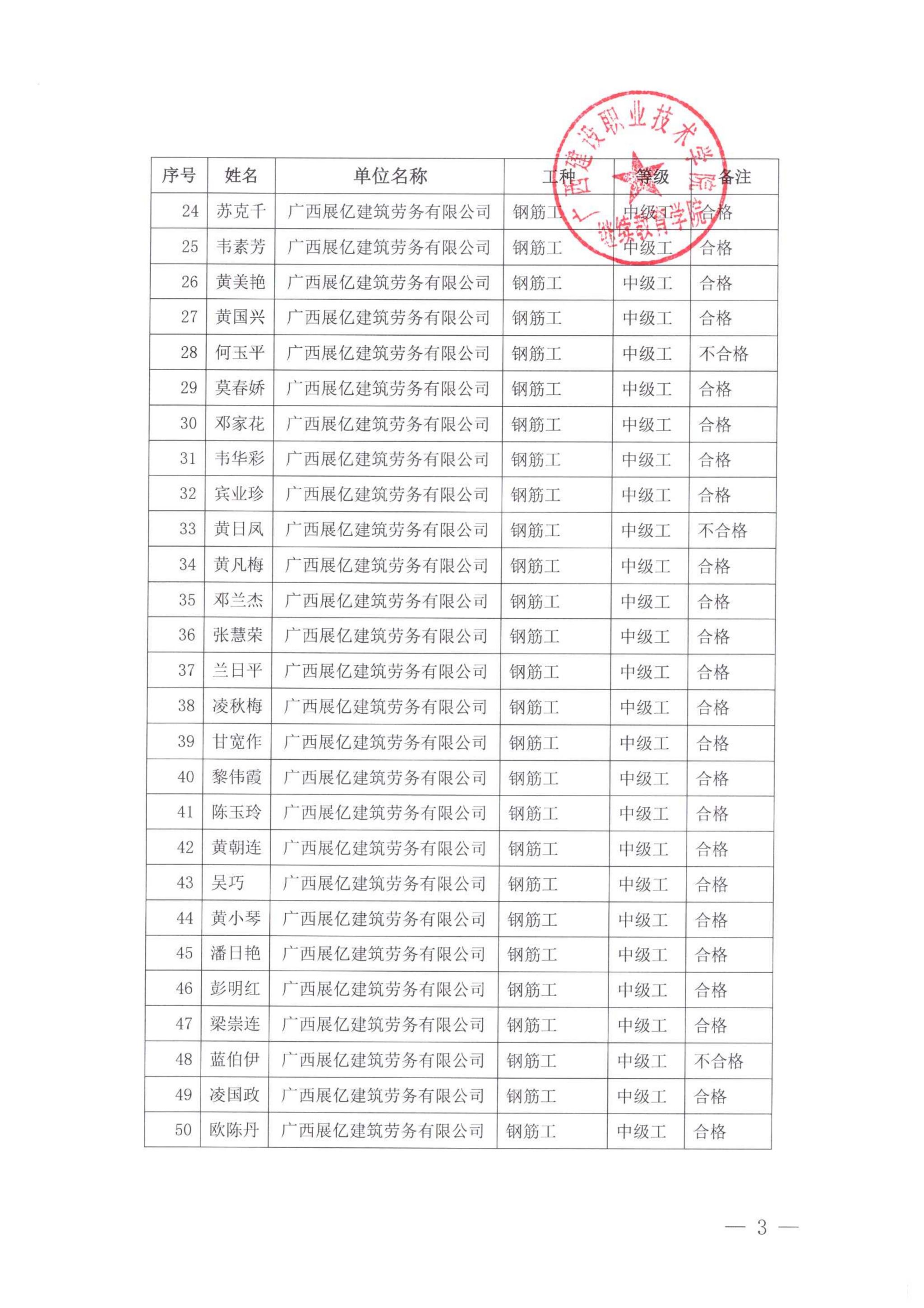 关于完美网页版2025年全区建筑产业工人第7期(防城港市第2期)培训考核成绩的公示