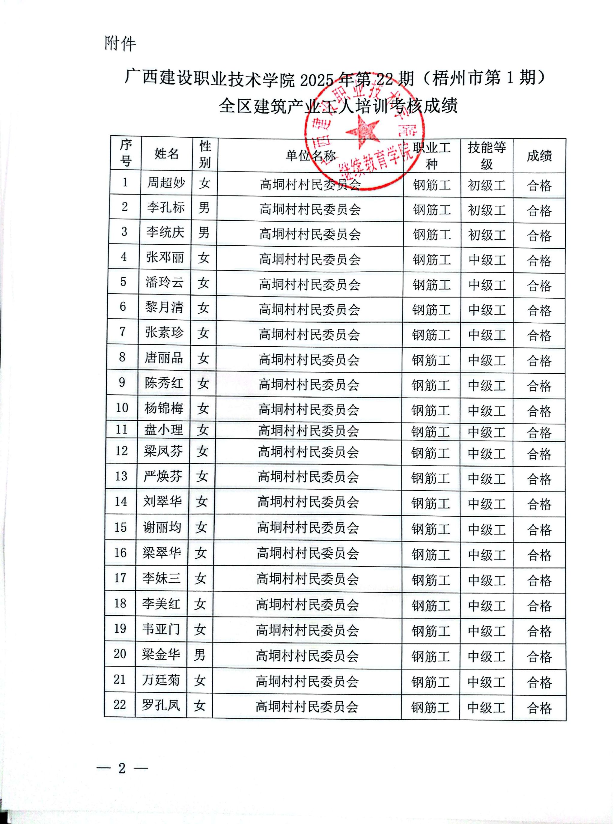 成绩公示 当前位置: 首页 >> 成绩公示 >> 正文 关于完美网页版2025年第22期(梧州市第1期)全区建筑产业工人培训考核成绩的公示 发布日期:2025-12-23 点击: 附件【关于完美网页版2025年第22期(梧州市第1期)全区建筑产业工人培训考核成绩的公示.pdf】已下载次