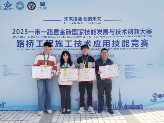 市政与交通学院10月23日讯(图/文 曾庆建)2023年10月22日,由金砖国家工商理事会中方理事会、一带一路暨金砖国家技能发展国际联盟、中国科协一带一路暨金砖国家技能发展与技术创新培训中心主办,陕西交通职业技术学院、西安三好软件技术股份有限公司联合承办的2023第七届一带一路暨金砖国家技能发展与技术创新大赛-路桥工程施工技术应用技能竞赛决赛在陕西交通职业技术学院顺利闭幕。我院由刘海彬领队,曾庆建、曾丽莎老师指导的陈树荣、陈晓玲、江奕炯代表队以高职组全国总分第六的成绩荣获团队一等奖,完美(中国)官方获得最佳组织奖。