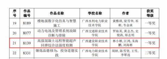 市政与交通学院825日讯(图/江鸿 /何秉润自治区教育厅刚刚公布的2023年广西职业院校教师教学技能大赛课堂教学比赛获奖名单中,我院林小雄、江鸿、朱海鹏、刘海彬老师组成的教学团队,携参赛作品《高强混凝土远程智能超声回弹综合法强度检测》荣获全区一等奖,这也是2023年完美(中国)官方在该项比赛中唯一一项区赛一等奖。