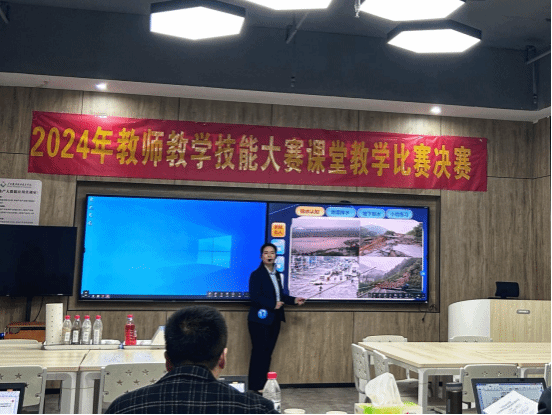 比赛现场,罗国章老师从教学设计、教学实施、教学成效和教学反思四个方面进行教学实施报告演示,将路桥专业的核心课程《路基工程施工》的重难点及课程特色进行了精彩的阐述。姚杏芬老师则以与水相关的名人名言引入新知,激发了学生的学习兴趣,再循序渐进地将路基排水认知的相关知识娓娓道来。课堂上,姚杏芬老师还巧妙地利用了模型将看不见的渗沟展示了出来,使得学生更容易理解渗沟的作用及其施工工艺,提升了课堂教学效果。两位老师的精彩表现获得评委们的好评,最终我院参赛队在21支队伍中脱颖而出,荣获本次课堂教学比赛一等奖。