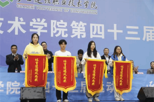 樊佳凤获女子高杆绣球第二名等;团体赛项中,我院斩获背篓绣球女子团体第一名,高杆绣球男子、女子团体均获第二名,女子4×100米第二名,混合组三人板鞋4×100米第二名……我院的教职工参赛队也获得了4×100米接力赛项一等奖、10人×50米迎面接力赛项二等奖、三人板鞋接力赛项三等奖的好成绩。