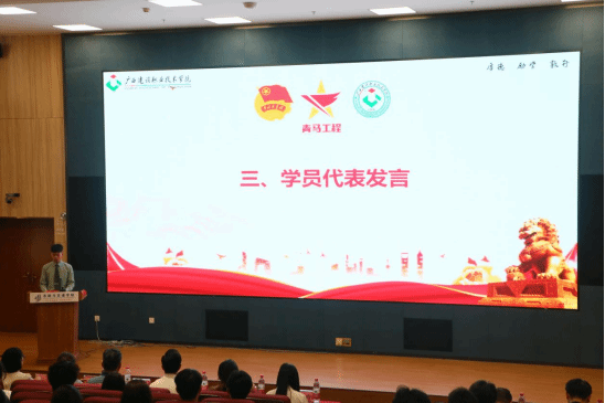 开班仪式上,学员代表李超以“时不我待,只争朝夕”、“继坚韧不拔之勇,向前程旭日开弓”等主题号召学员们要不忘历史,牢记使命,紧紧跟随党的步伐,厚植爱国情怀、坚定青春信仰、树立青春志向,在实践中抵达青年理想的明月春山。
