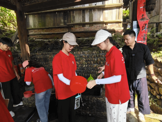 途中,实践团还经过了很多侗寨山泉井,井水清澈见底,甘甜可口,成为了当地村民日常生活的重要水源,实践团成员还品尝了山泉水,体验自然与生活的和谐共生。