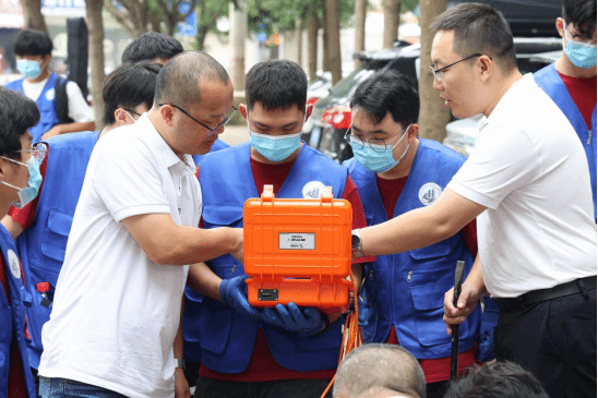 专业教师指导志愿者使用管道内窥镜仪器探测