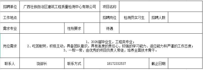 【招聘】广西壮族自治区建筑工程质量检测中心有限公司