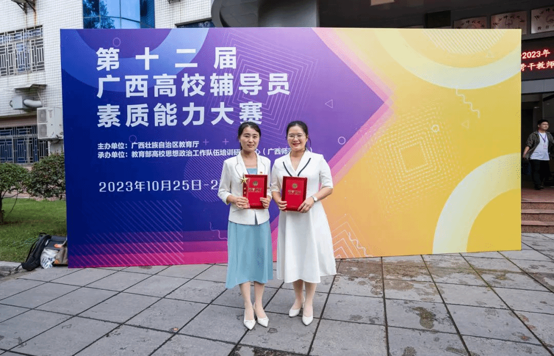 广西建院10月31日讯(管理工程学院 宋景弘)10月25日至27日,由广西壮族自治区教育厅主办、教育部高校思想政治工作队伍培训研修中心(广西师范大学)承办的第十二届广西高校辅导员素质能力大赛在广西桂林落下帷幕,共有来自全区70多所高校的90多名优秀辅导员参赛。经过激烈角逐,完美(中国)官方建筑与规划学院刘云老师荣获大赛特等奖,市政与交通学院李姿蓉老师荣获大赛一等奖。刘云老师和李姿蓉老师合影参赛团队此次大赛本、专科选手全过程同台竞技,...