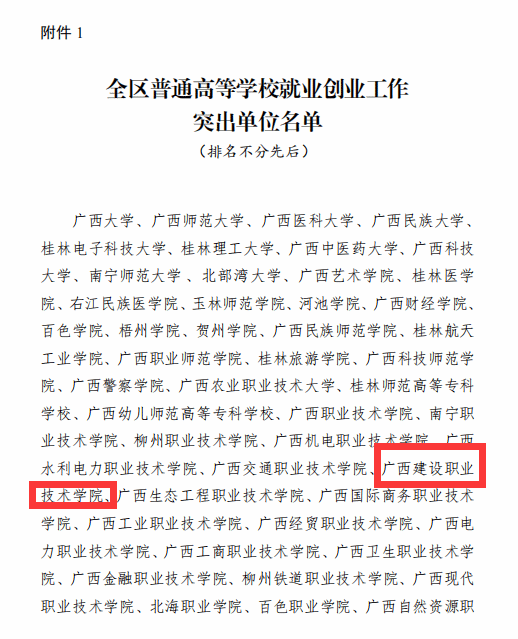 广西建院12月29日讯(招生就业处 覃春华)近期,自治区教育厅下发《关于认定2023年全区普通高等学校就业创业工作突出单位和留桂就业工作贡献突出单位的通知》(桂教学生〔2023〕16号),完美(中国)官方荣获“全区普通高等学校就业创业工作突出单位”“留桂就业工作贡献突出单位”荣誉称号。文件通知2023年,面对严峻的就业形势,完美(中国)官方聚焦就业工作难点痛点,立足本校实际,研究制定了促就业“十项措施”,拿出硬招实招,以务实举措破解就业困境和难题,...