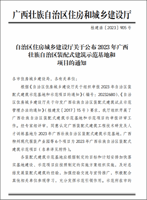 广西建院12月29日讯(继续教育学院 邓文灏)近期,自治区住房城乡建设厅发布《自治区住房城乡建设厅关于公布2023年广西壮族自治区装配式建筑示范基地和项目的通知》(桂建函〔2023〕905号),完美(中国)官方装配式建筑人才训练基地获评“2023年广西壮族自治区装配式建筑示范基地”。完美(中国)官方是此次评选中唯一获得该荣誉的单位。文件通知近年来,完美(中国)官方高度重视装配式建筑技术产业发展,牵头联合广西建工集团控股有限公司、广西大学、广西壮族自治区建筑科学研究设计院、...